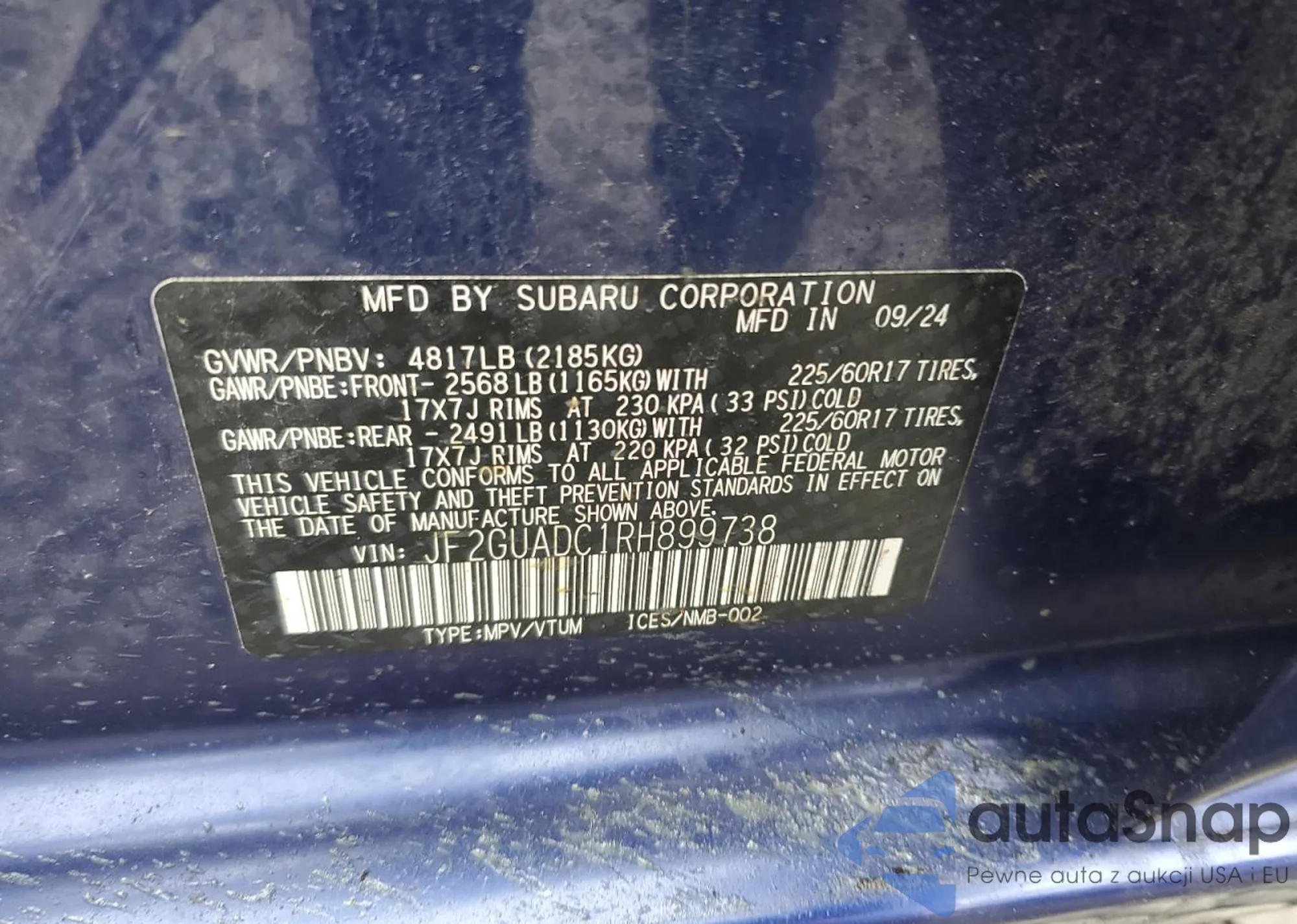 • VIN JF2GUADC1RH899738