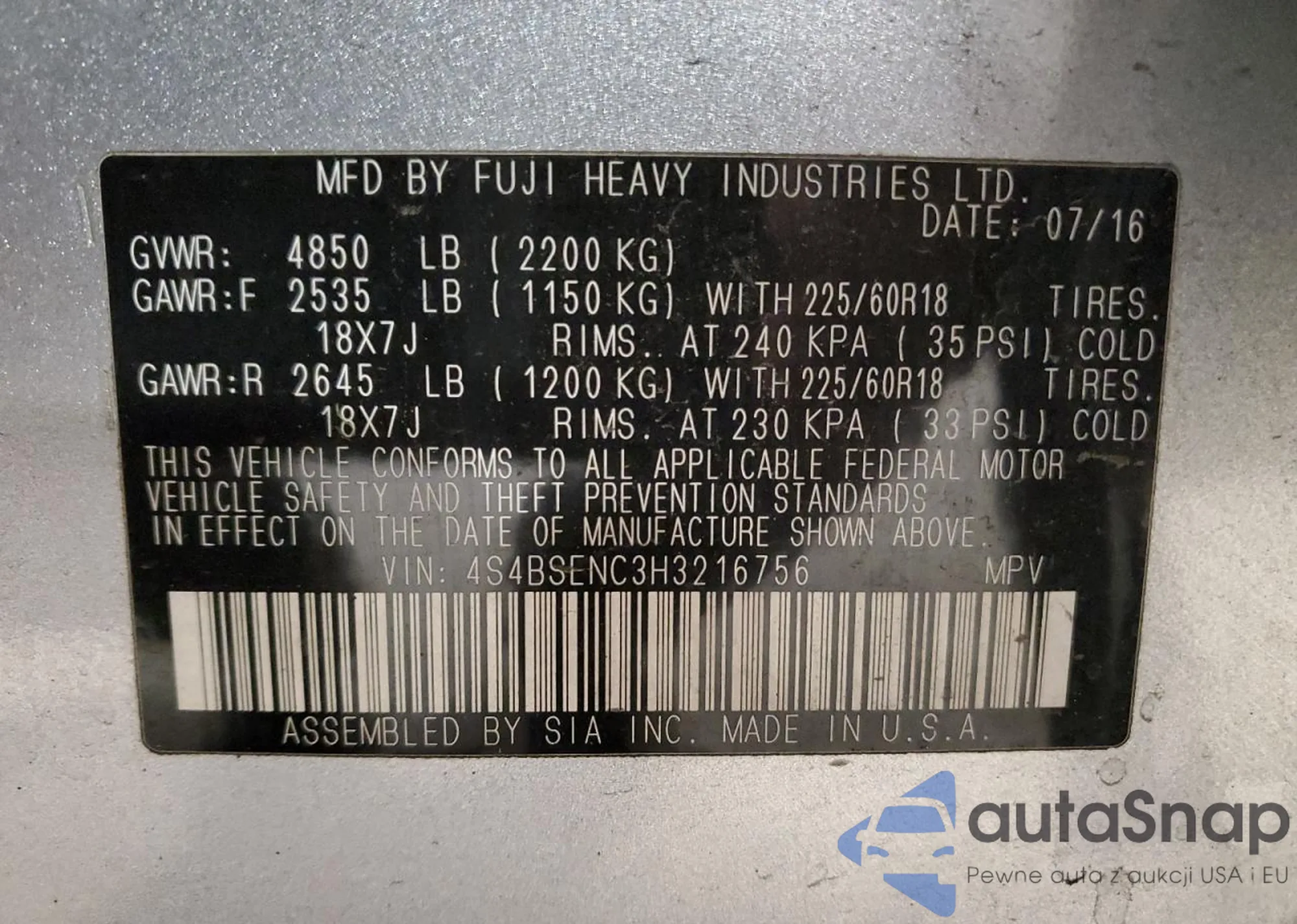 • VIN 4S4BSENC3H3216756
