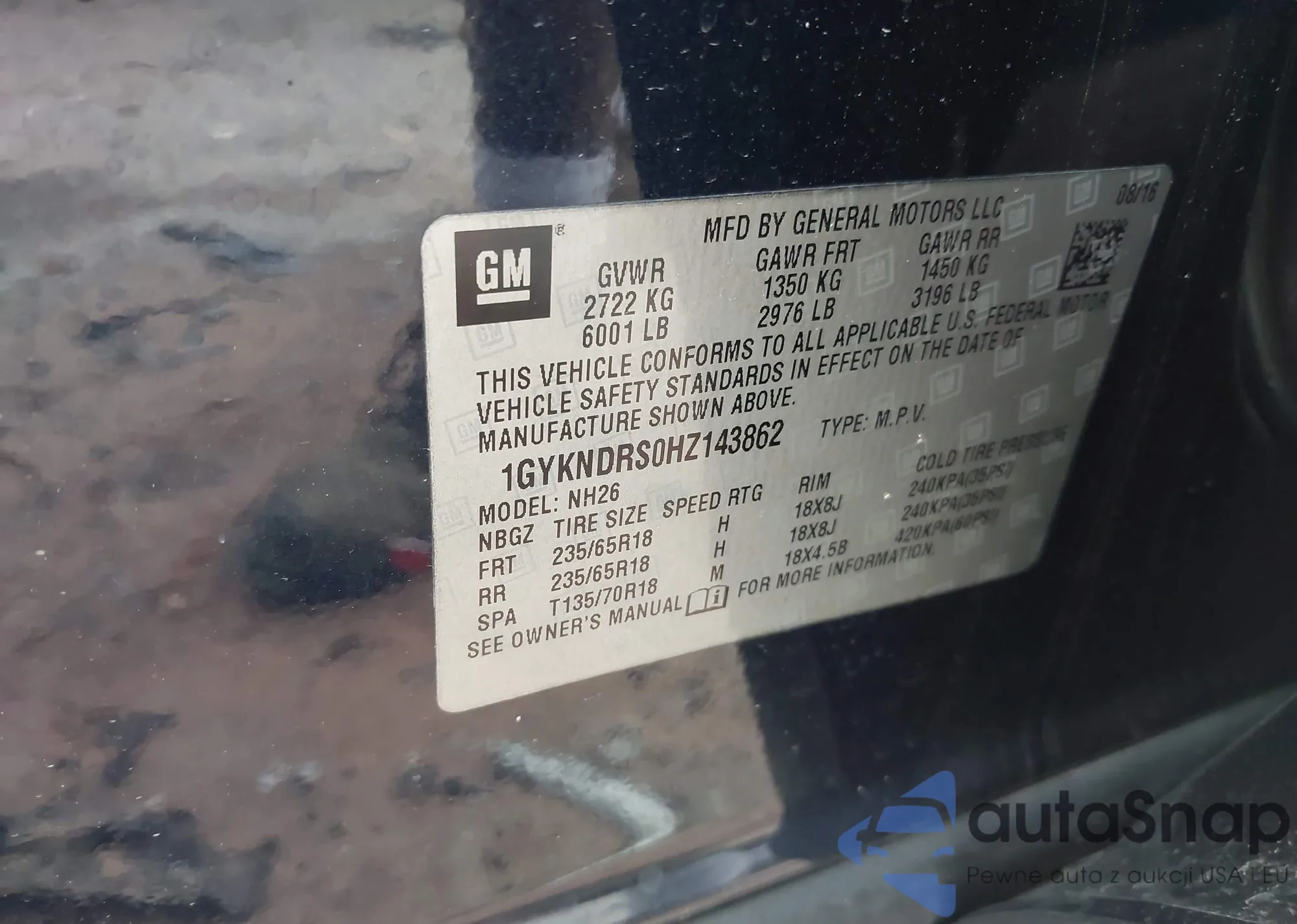 LOT: 43006490 VIN: 1GYKNDRS0HZ143862