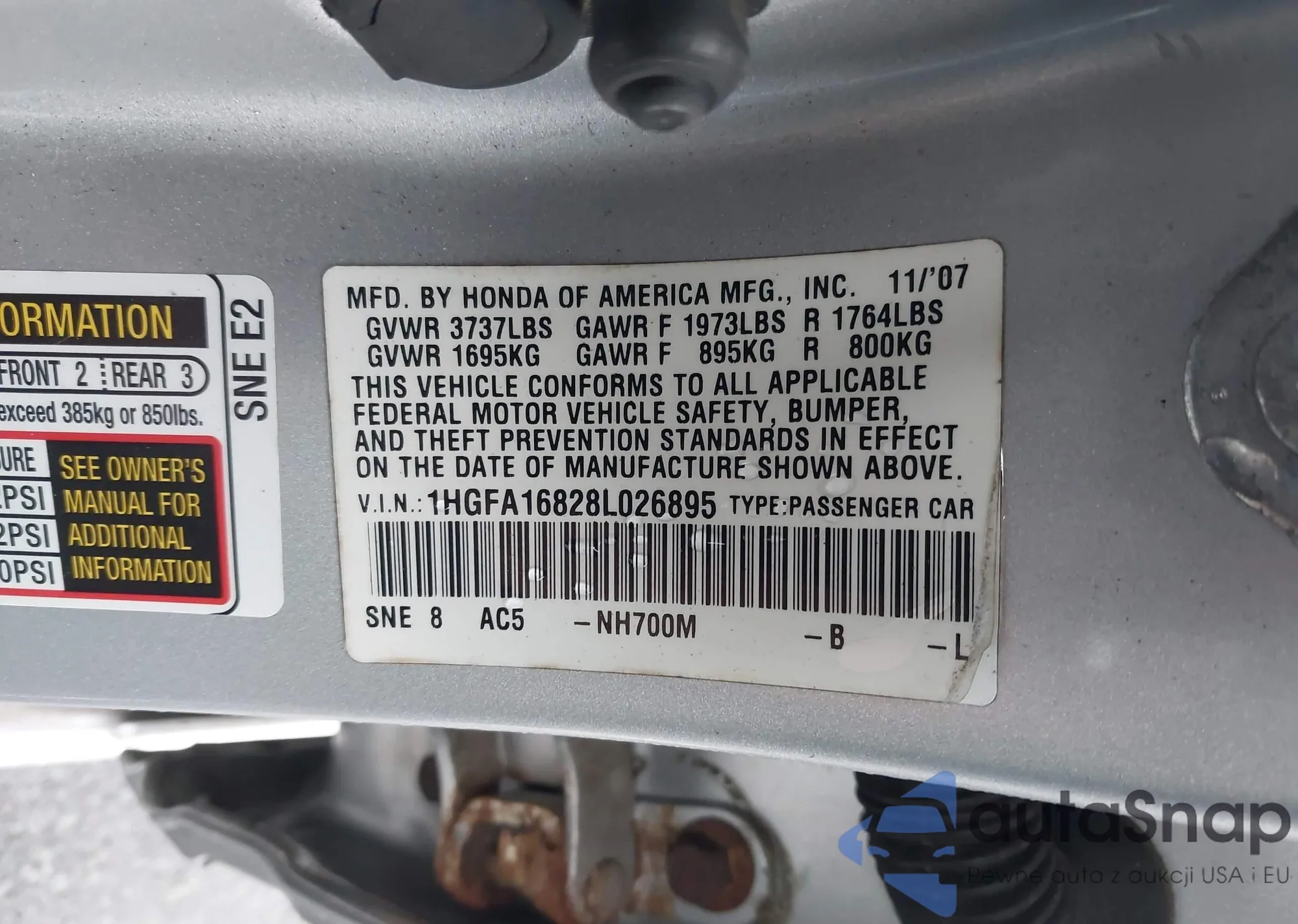LOT: 43056722 VIN: 1HGFA16828L026895