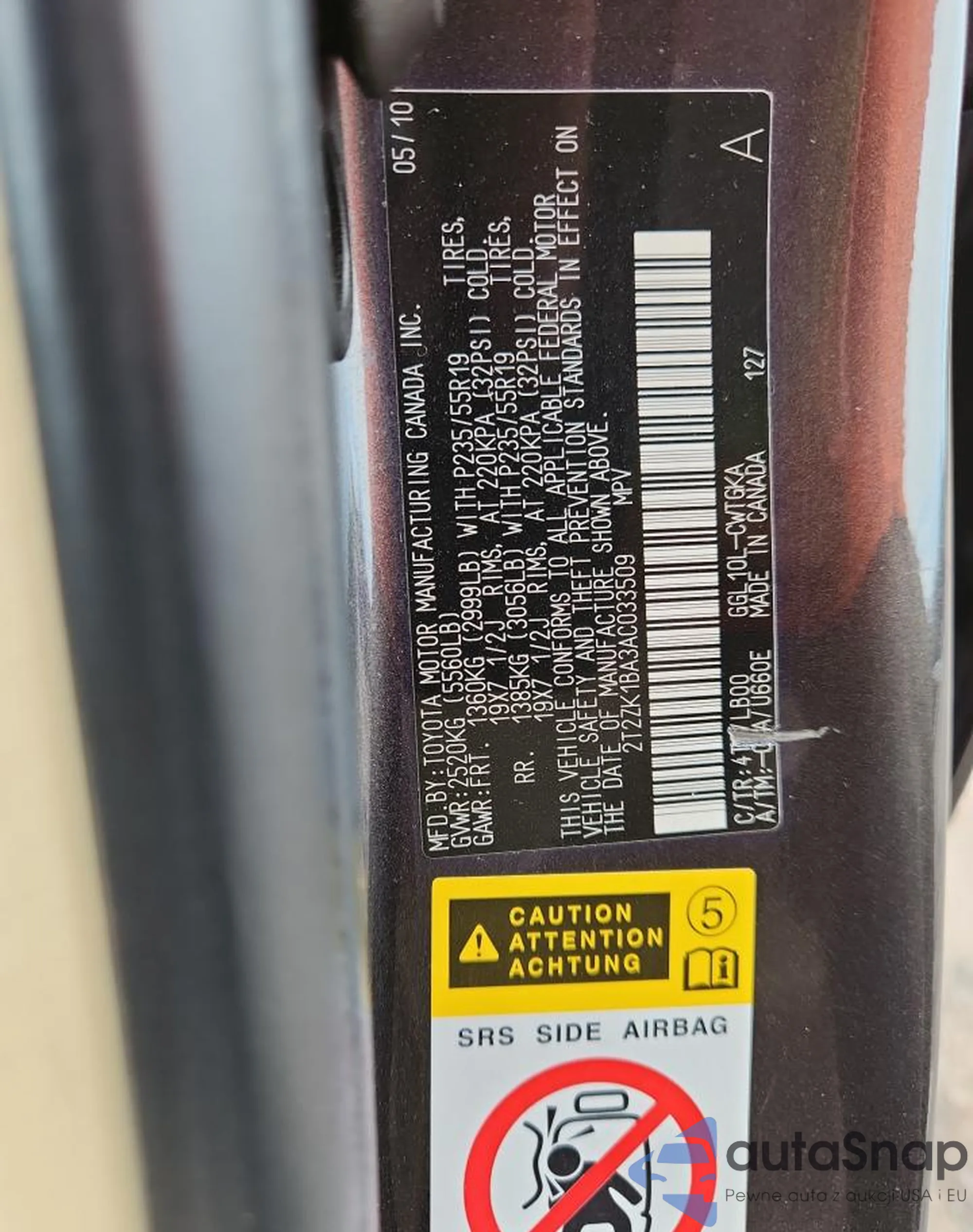 • VIN 2T2ZK1BA3AC033509