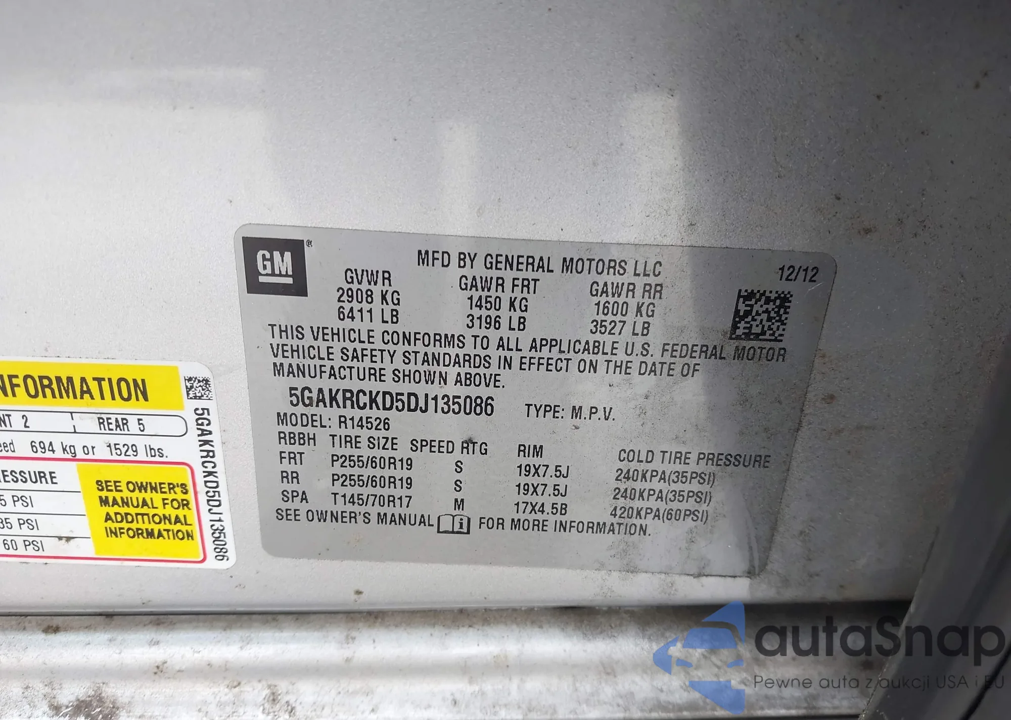 LOT: 43269100 VIN: 5GAKRCKD5DJ135086