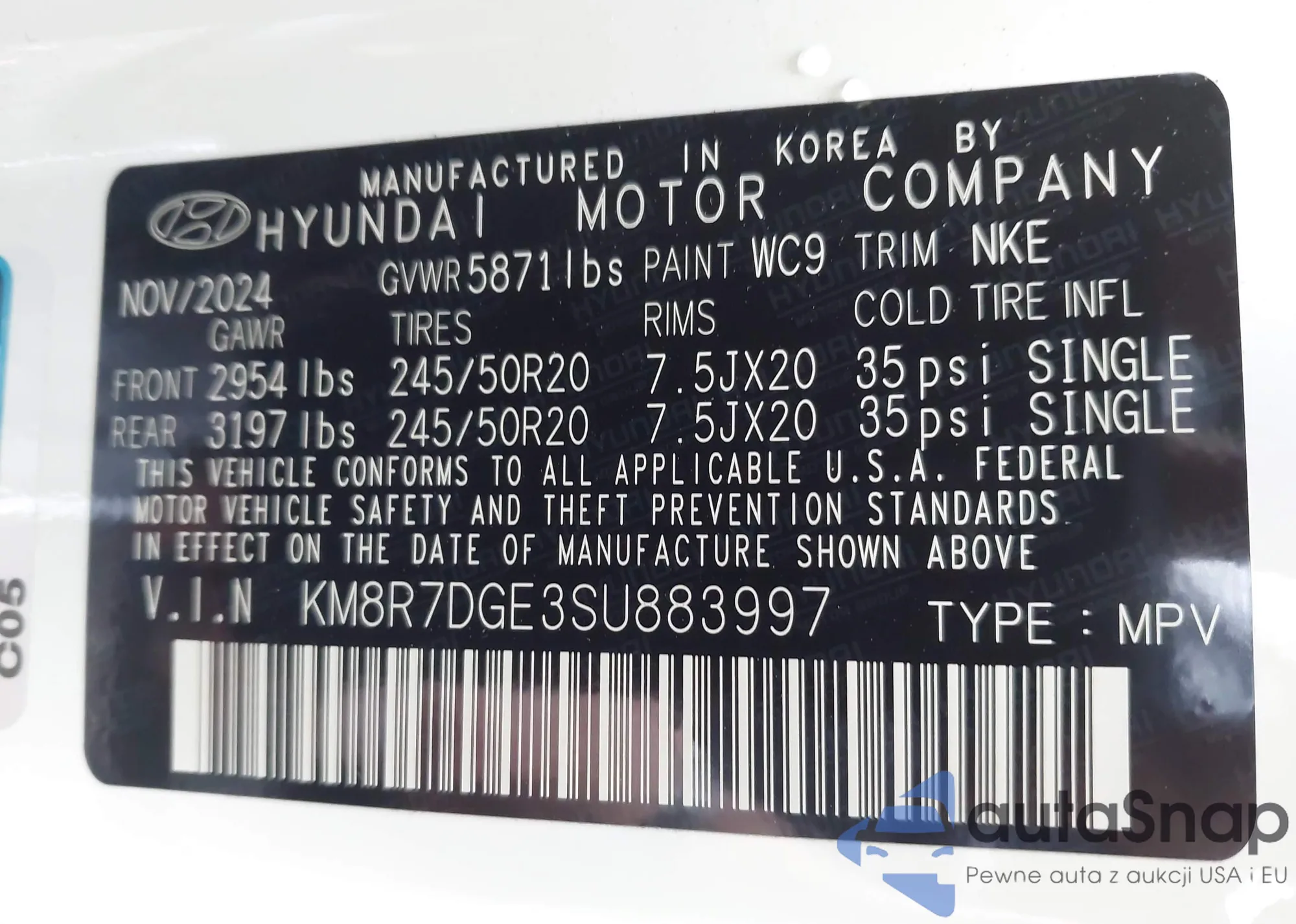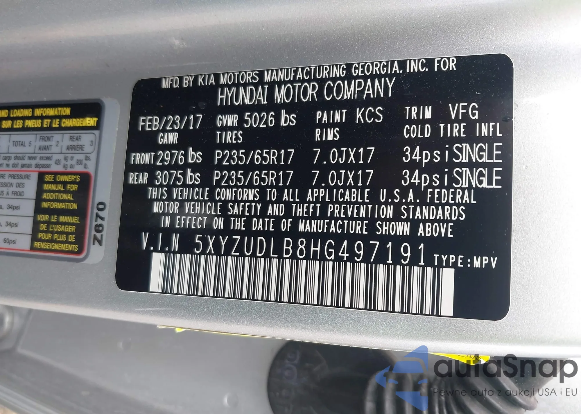• VIN 5XYZUDLB8HG497191