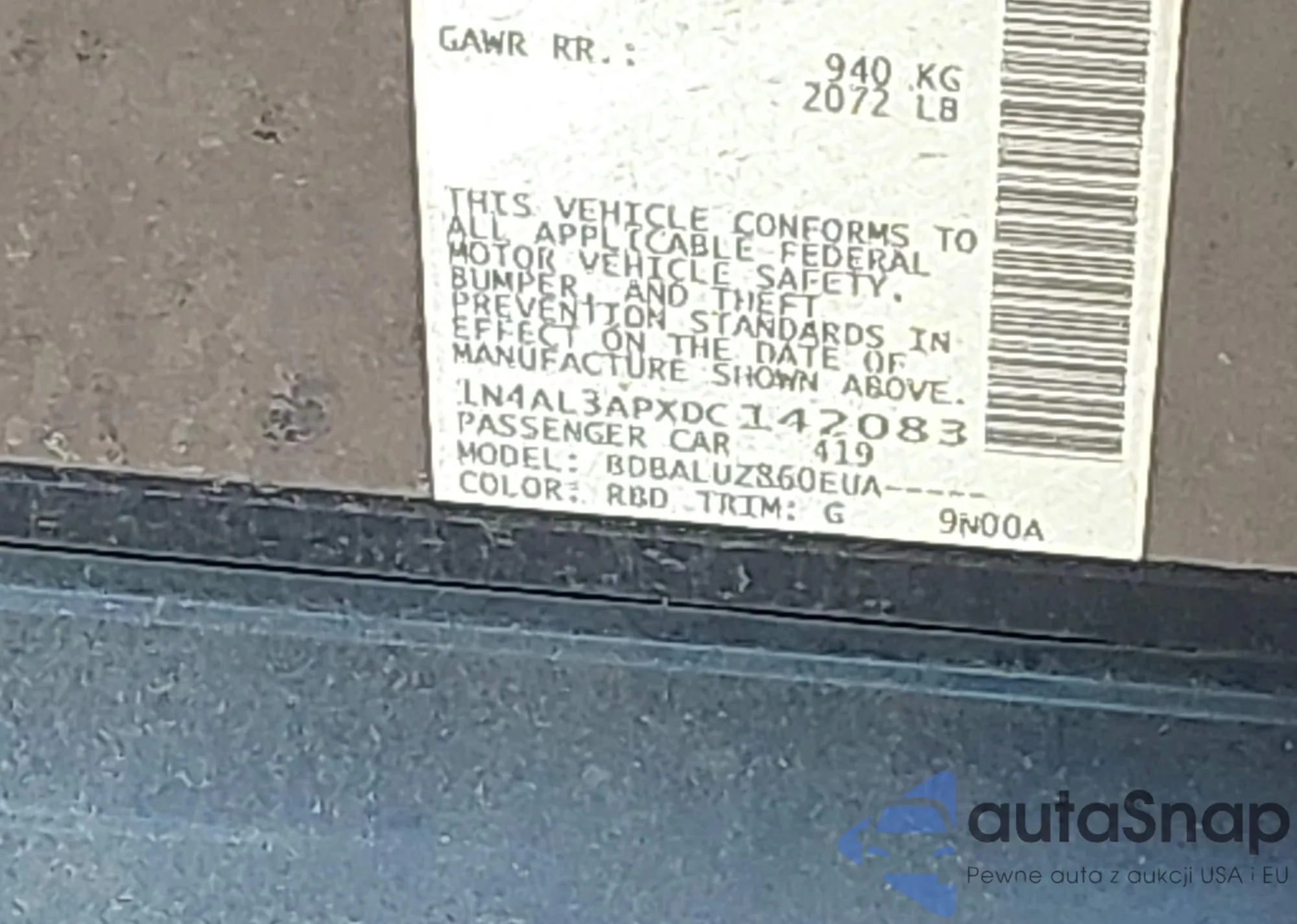 LOT: 43327122 VIN: WAUB4CF57KA074964