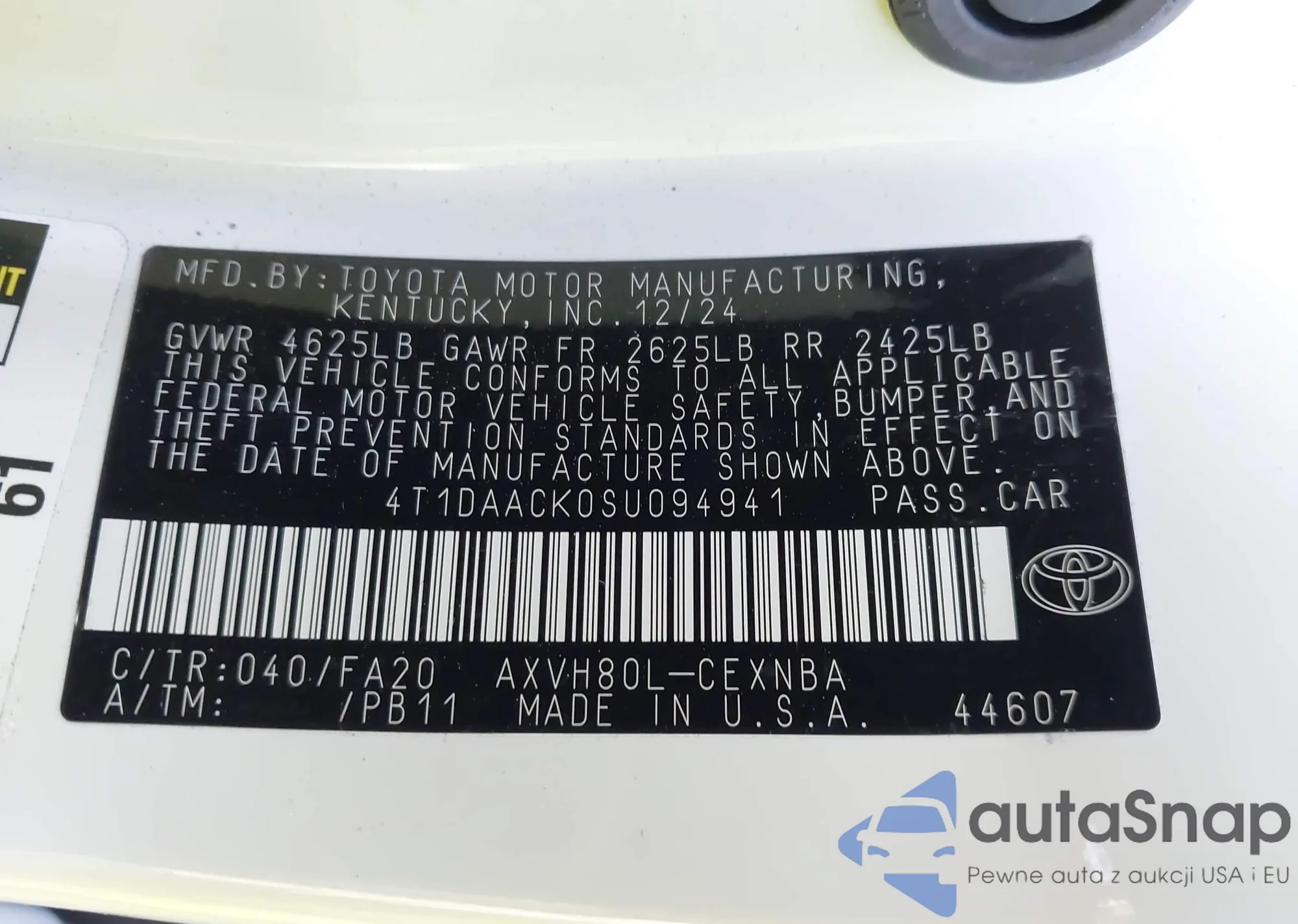 LOT: 43292456 VIN: 4T1DAACK0SU094941