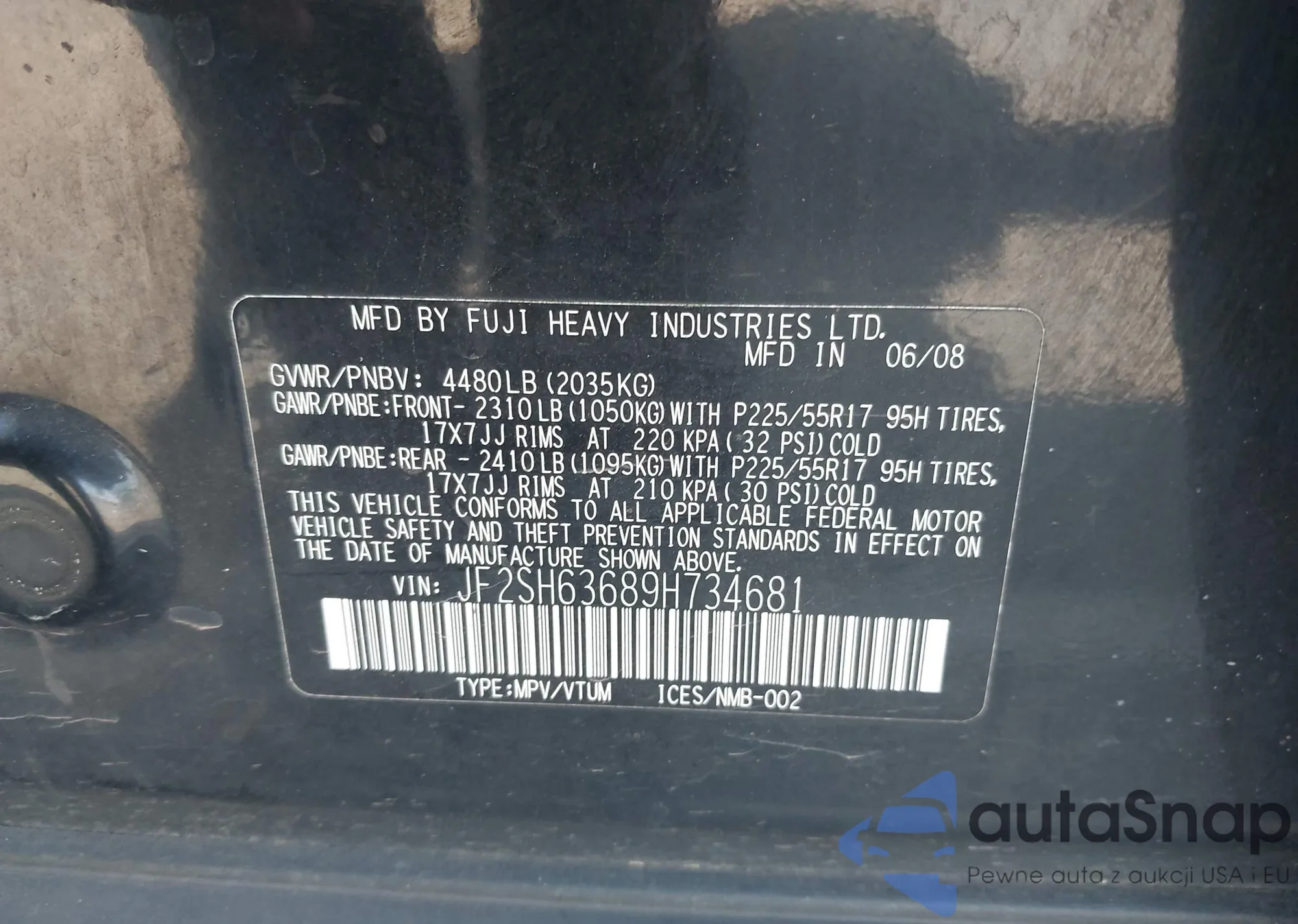 LOT: 43310176 VIN: JF2SH63689H734681