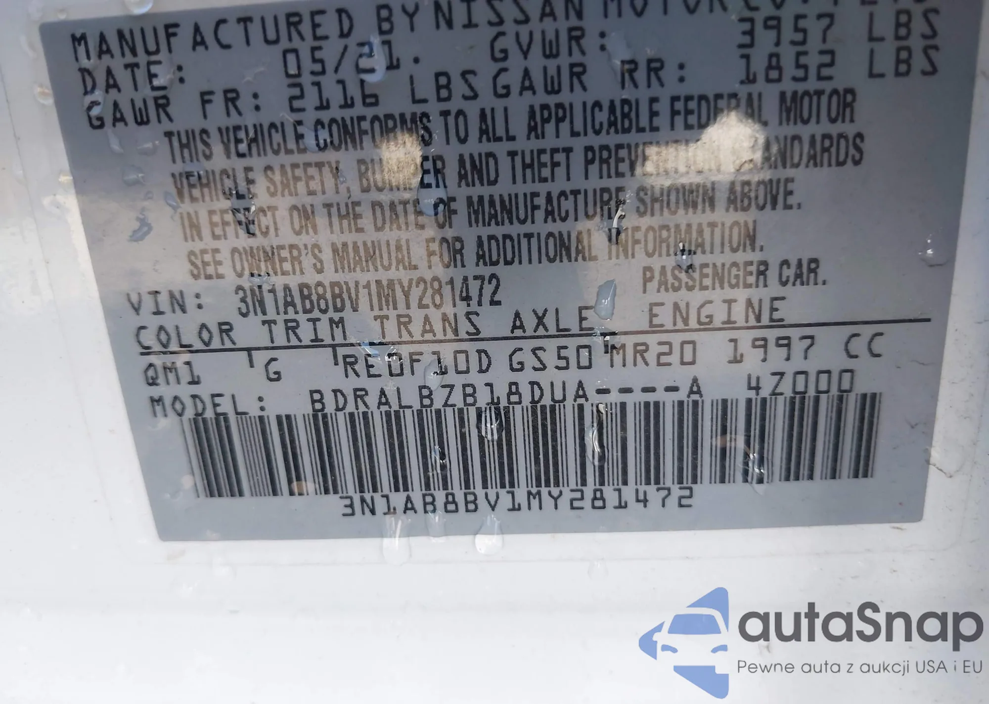 LOT: 43264171 VIN: 3N1AB8CVXLY255496