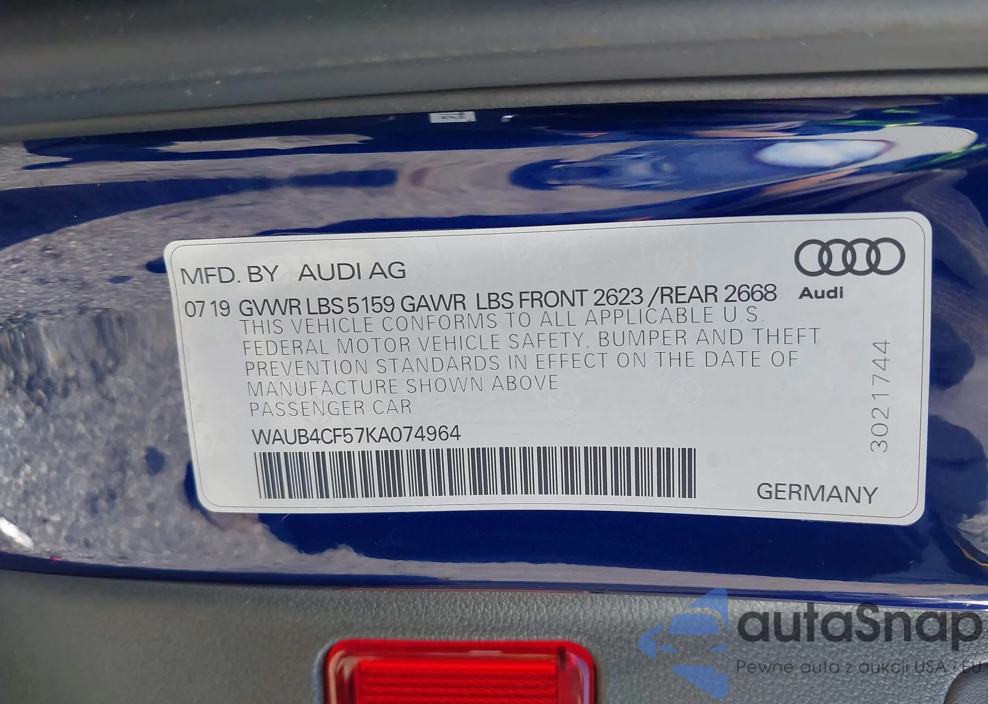 • VIN WAUB4CF57KA074964