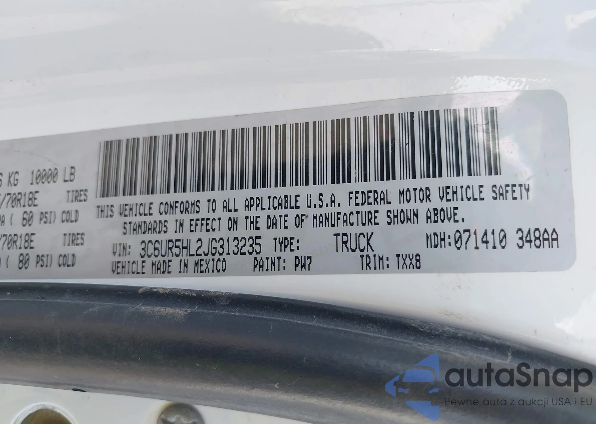 • VIN 3C6UR5HL2JG313235