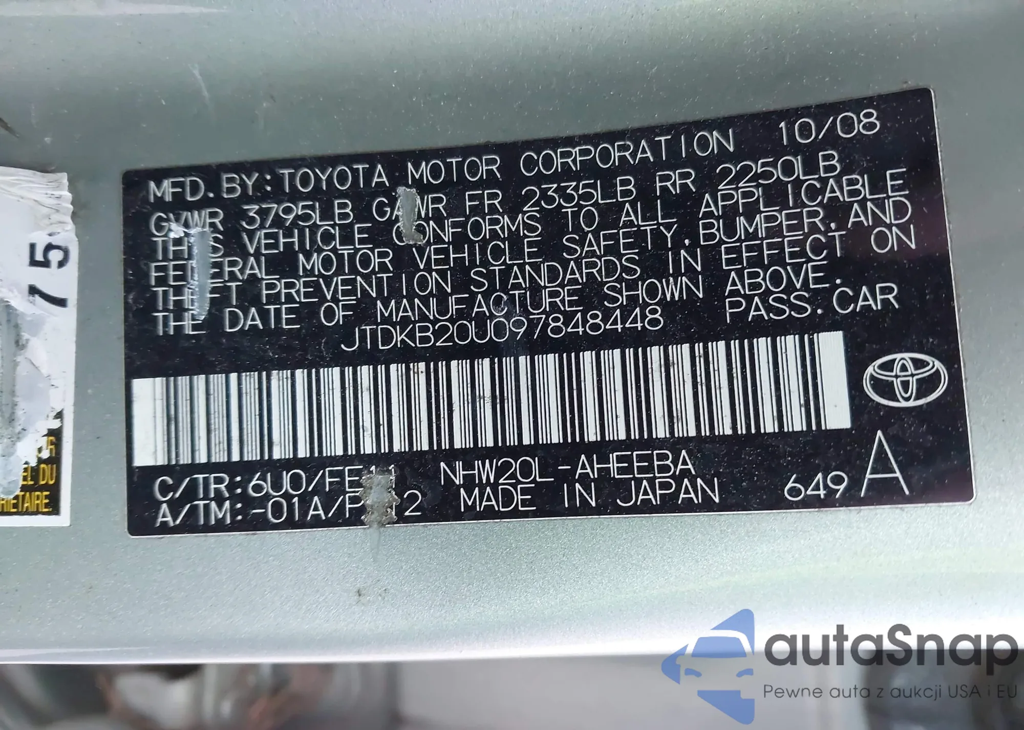 • VIN JTDKB20U097848448