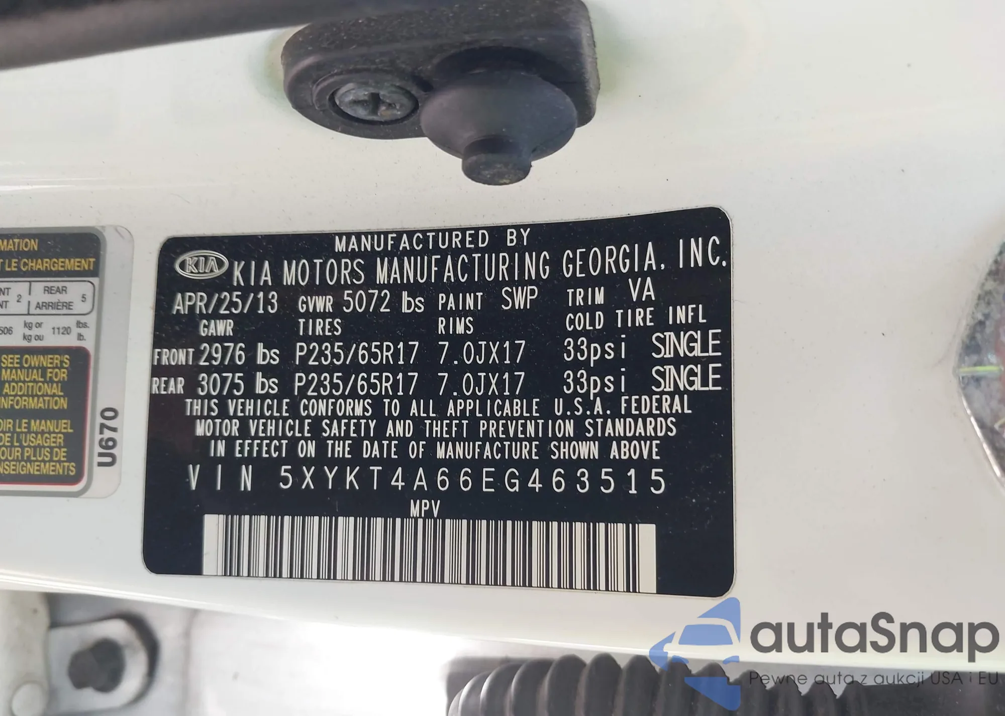 LOT: 43365405 VIN: KM8SR4HF9GU138715