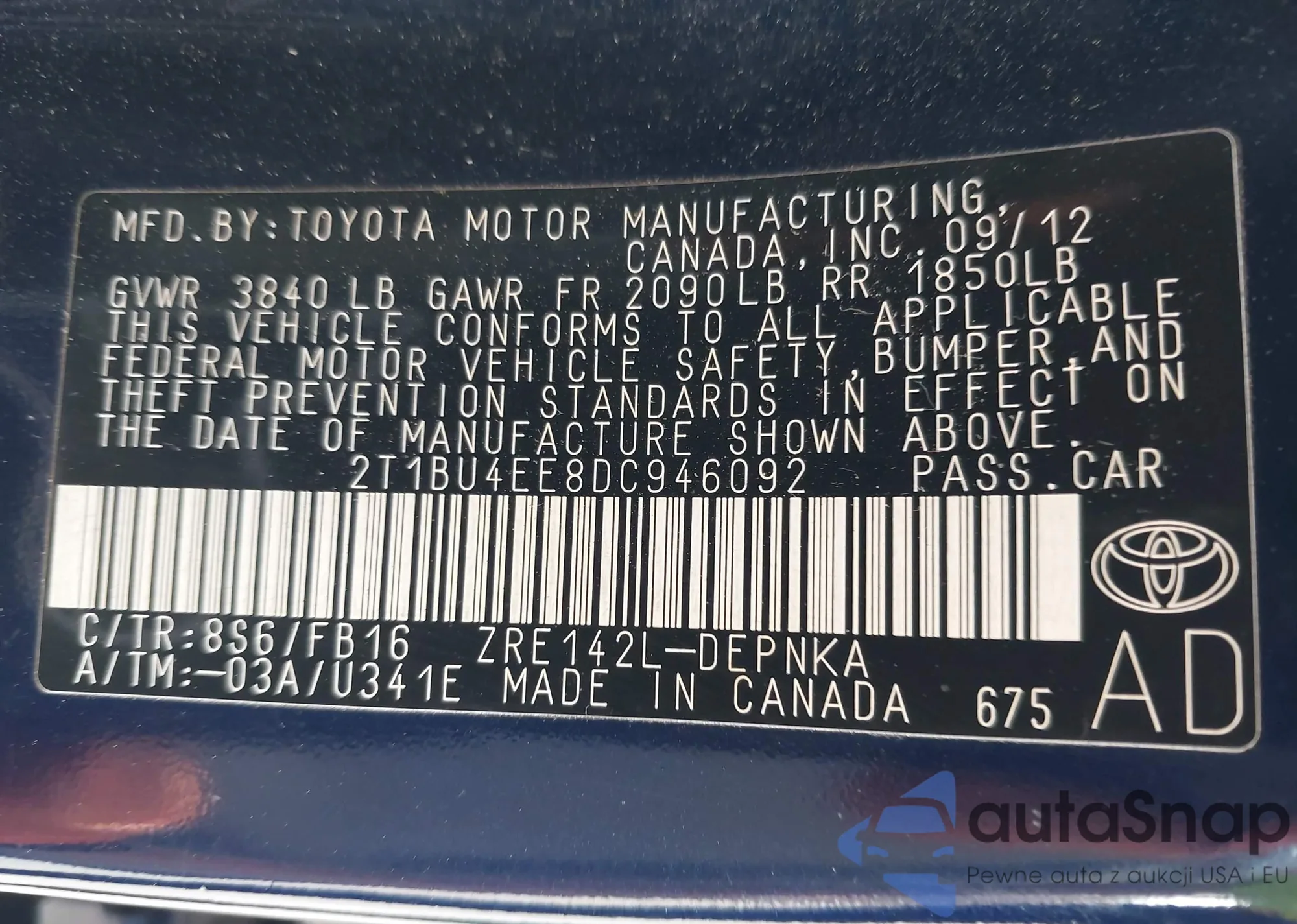• VIN 2T1BU4EE8DC946092