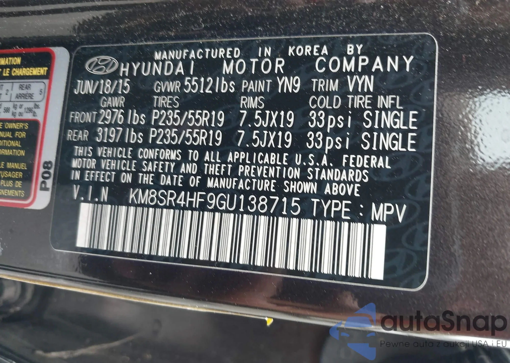 • VIN KM8SR4HF9GU138715