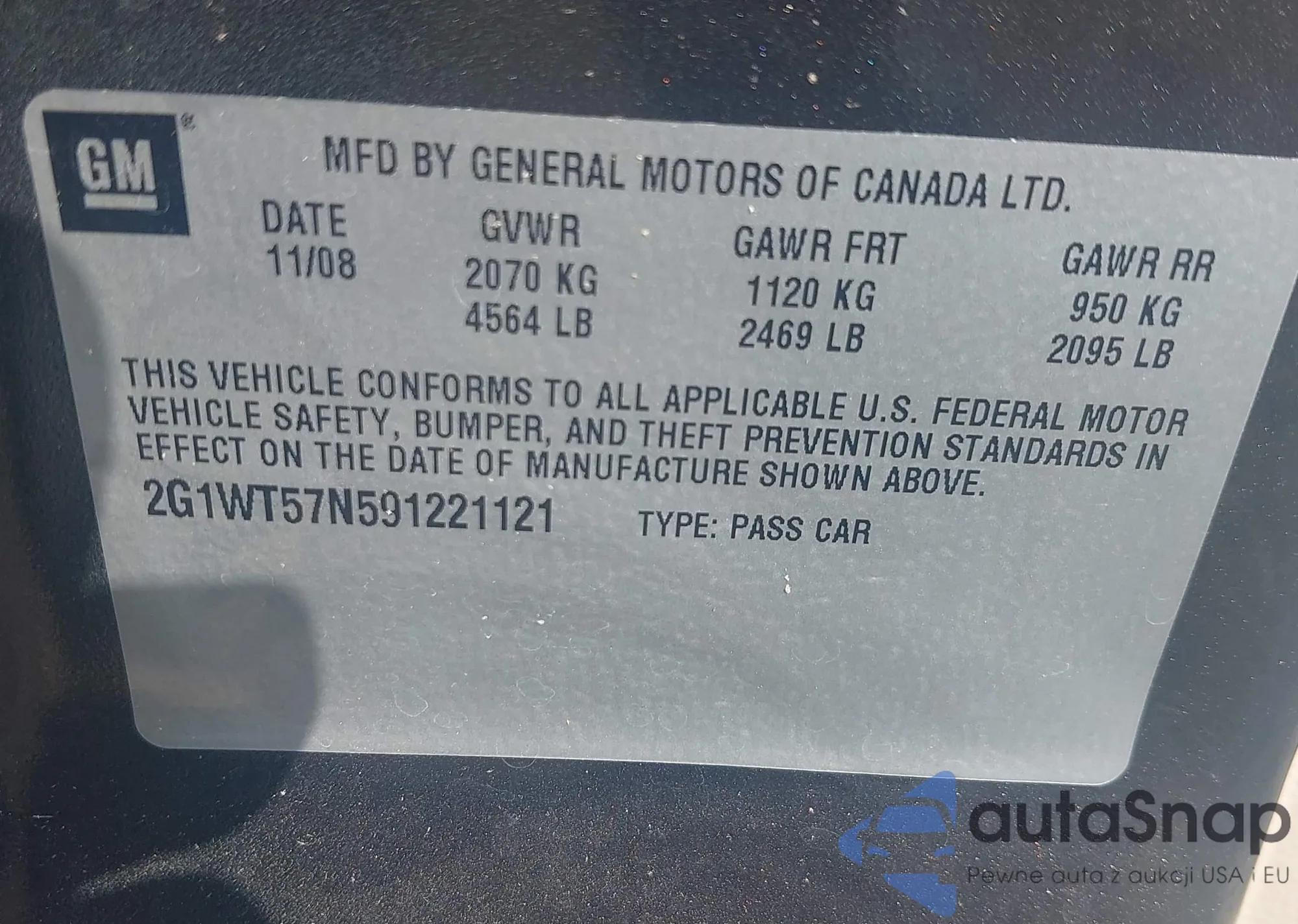 • VIN 2G1WT57N591221121