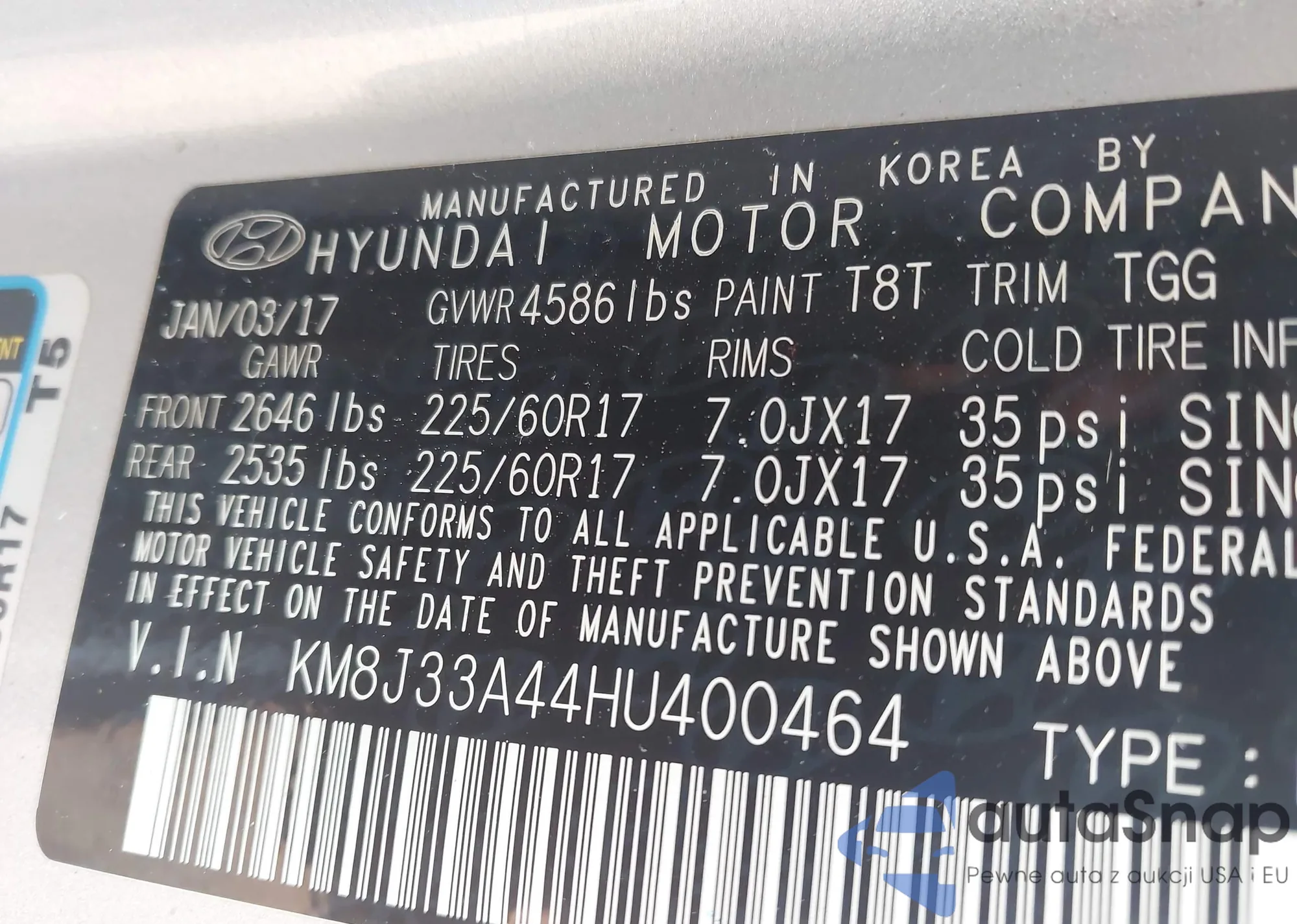 • VIN KM8J33A44HU400464
