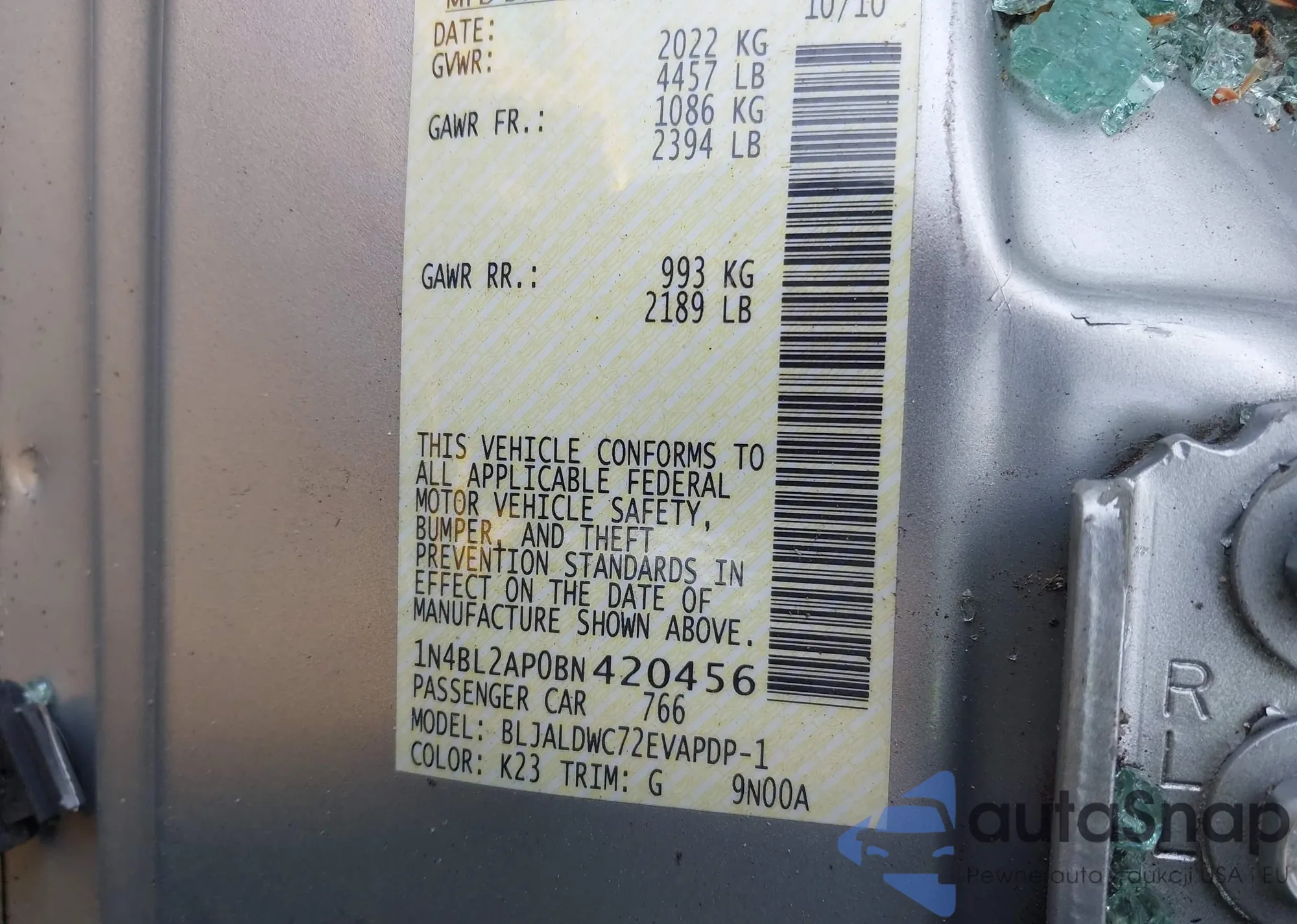 • VIN 1N4BL2AP0BN420456