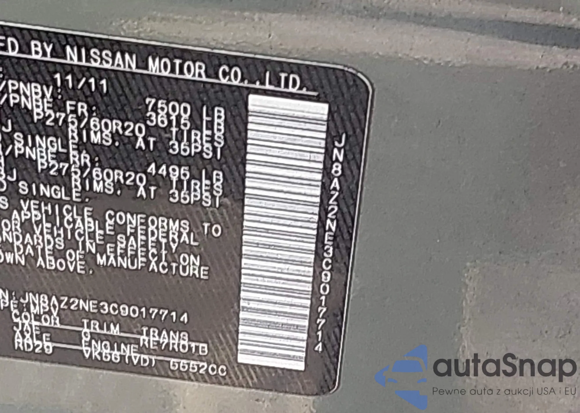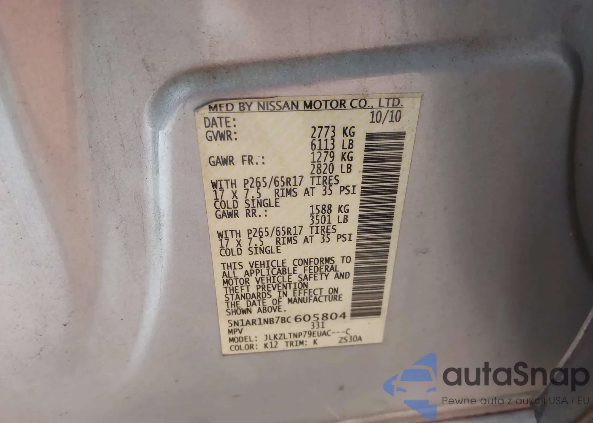• VIN 5N1AR1NB7BC605804