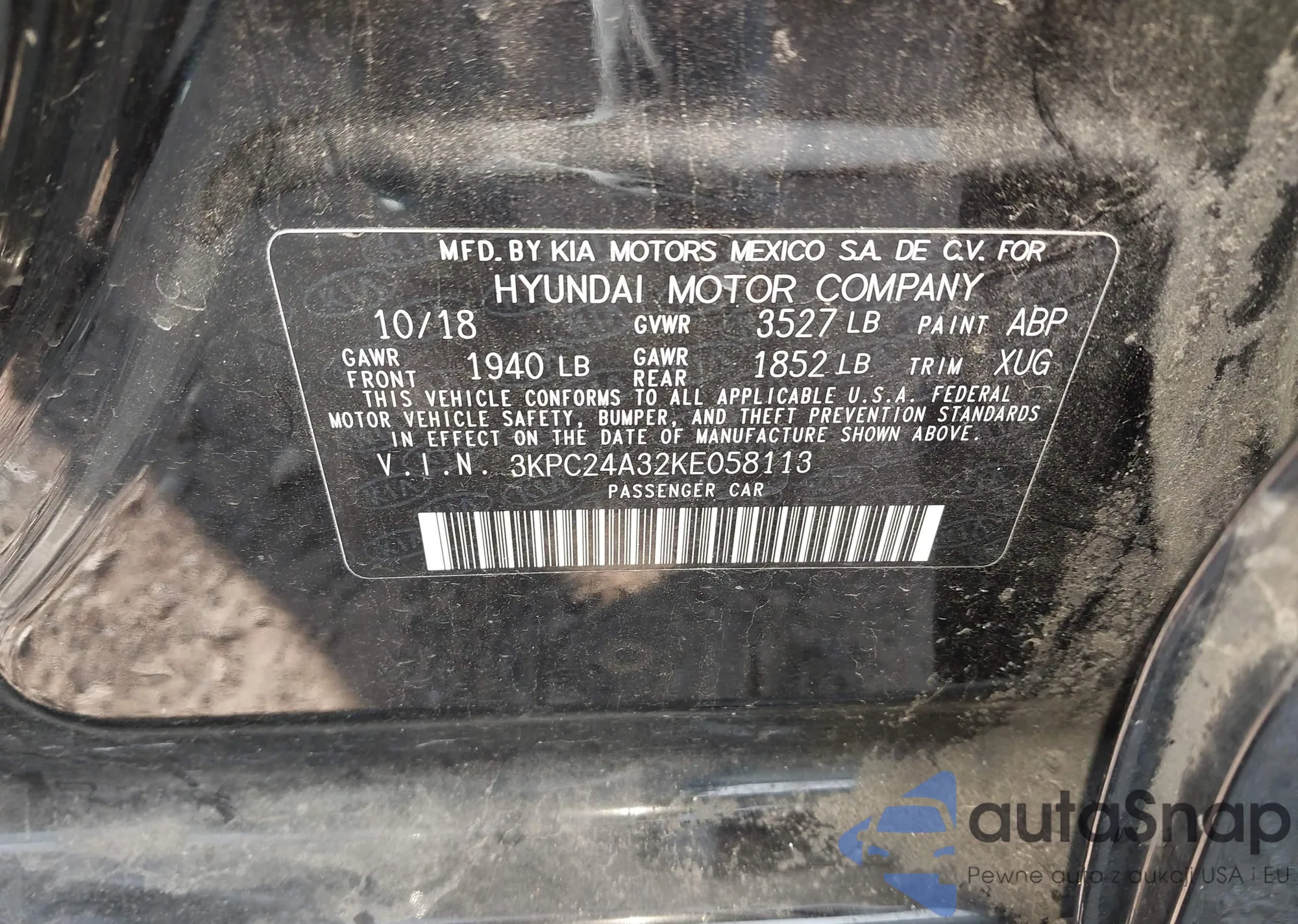 • VIN 3KPC24A32KE058113