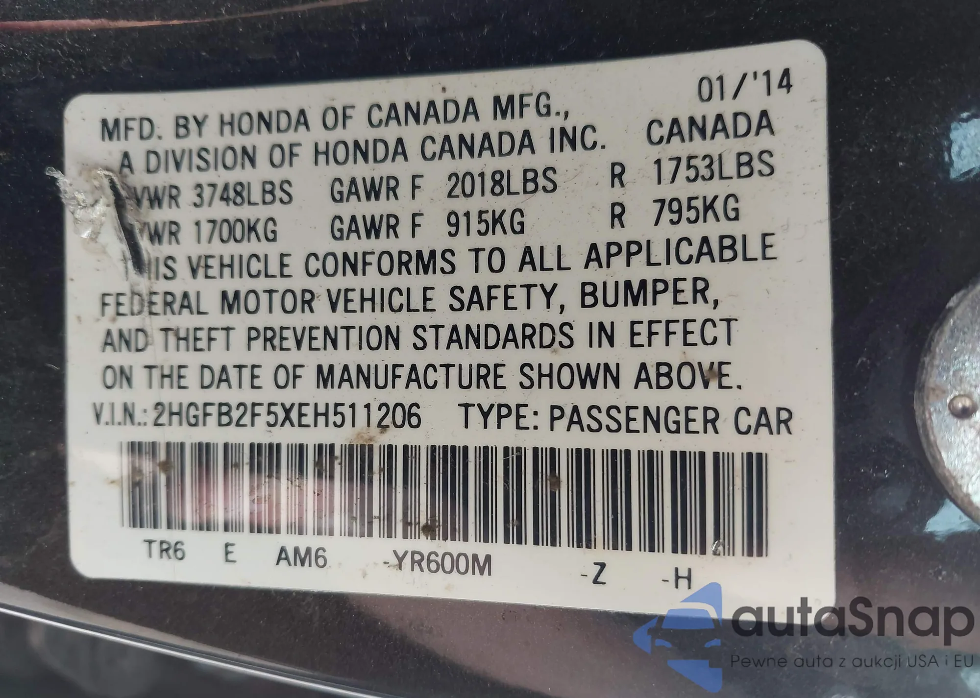 • VIN 19XFB2F55EE079358