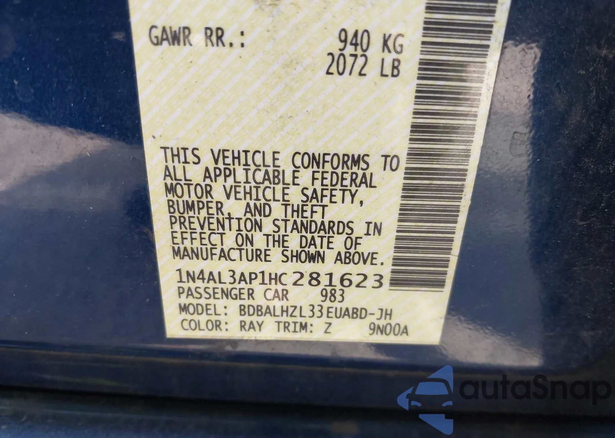 LOT: 43214272 VIN: 1N4AL3AP1HC281623