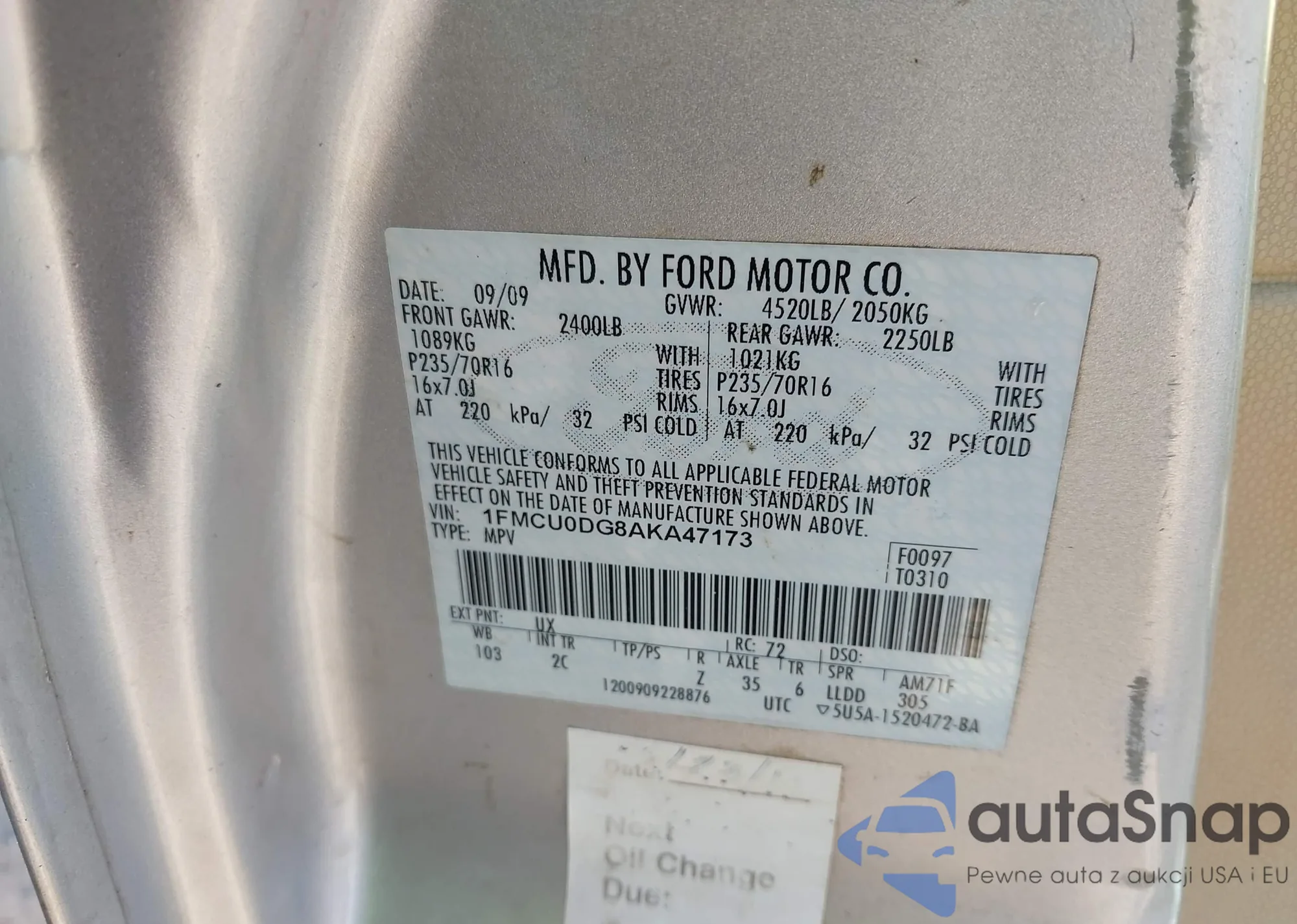 • VIN 1FMCU0DG8AKA47173