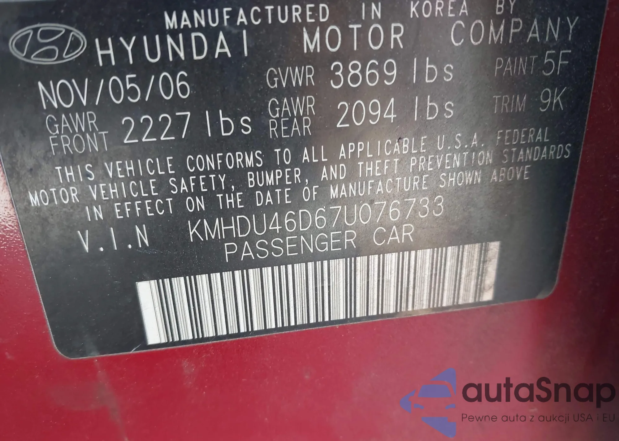 • VIN KMHDU46D67U076733