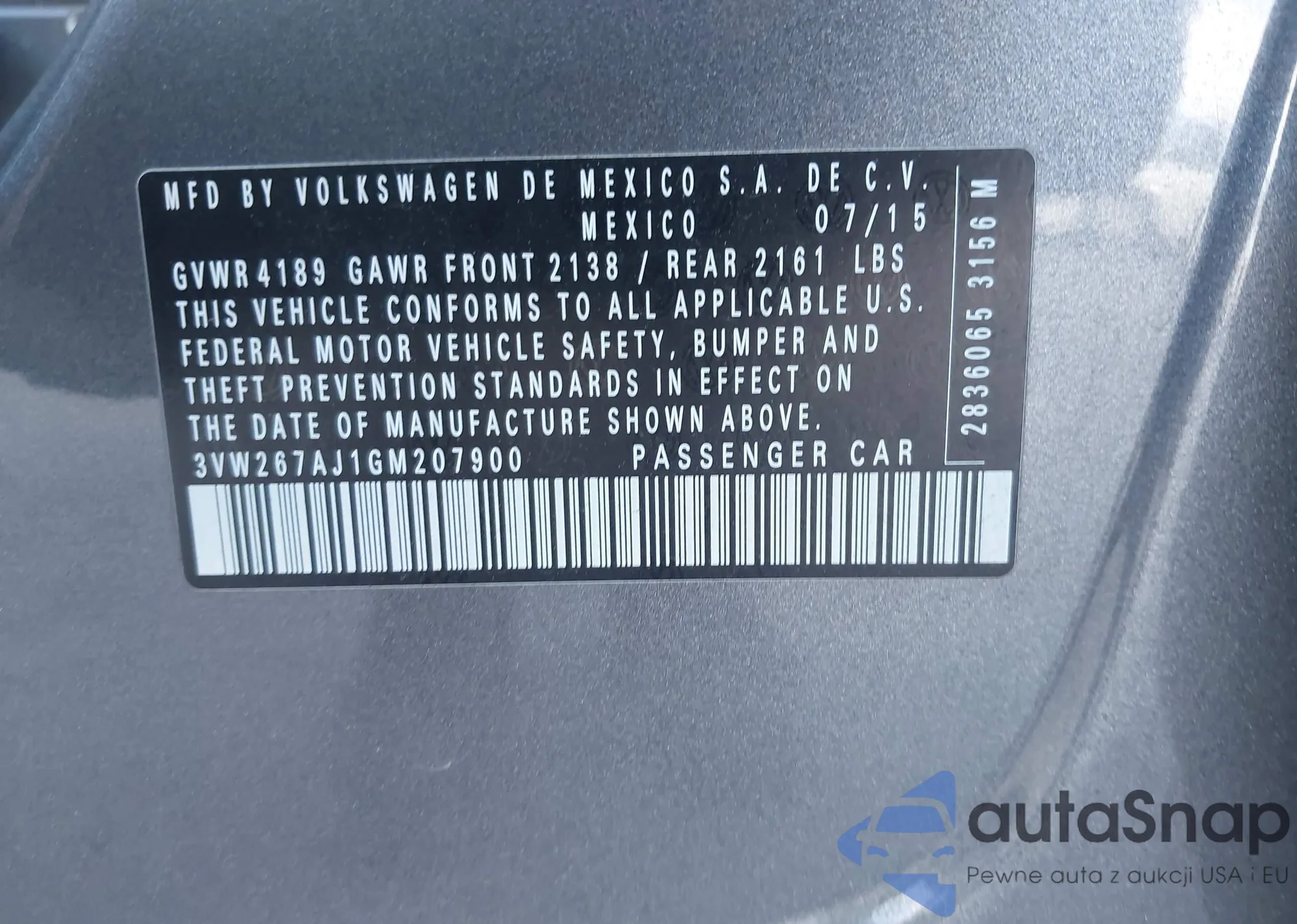 • VIN 3VW267AJ1GM207900