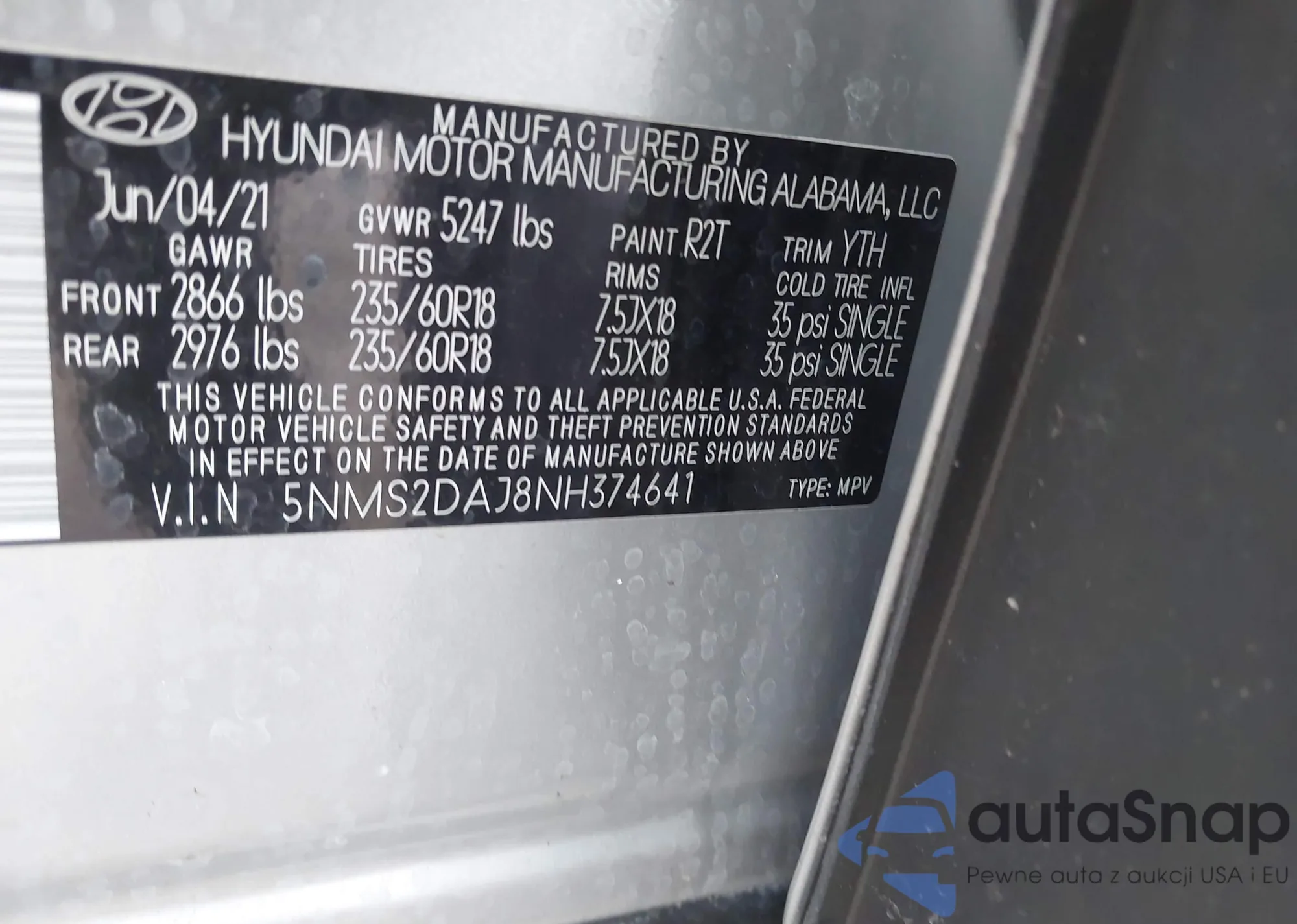 • VIN 5NMS2DAJ8NH374641