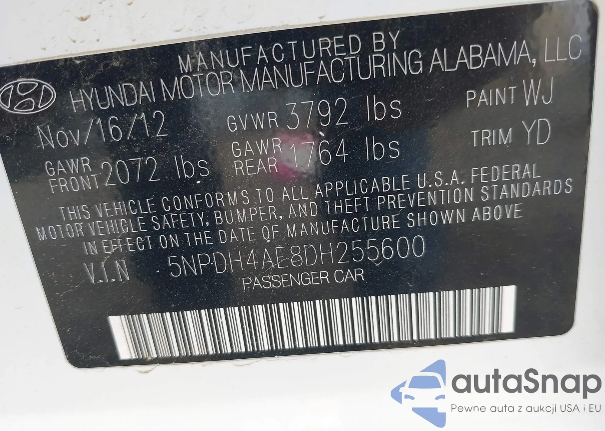 LOT: 42917259 VIN: 5NPDH4AE8DH255600