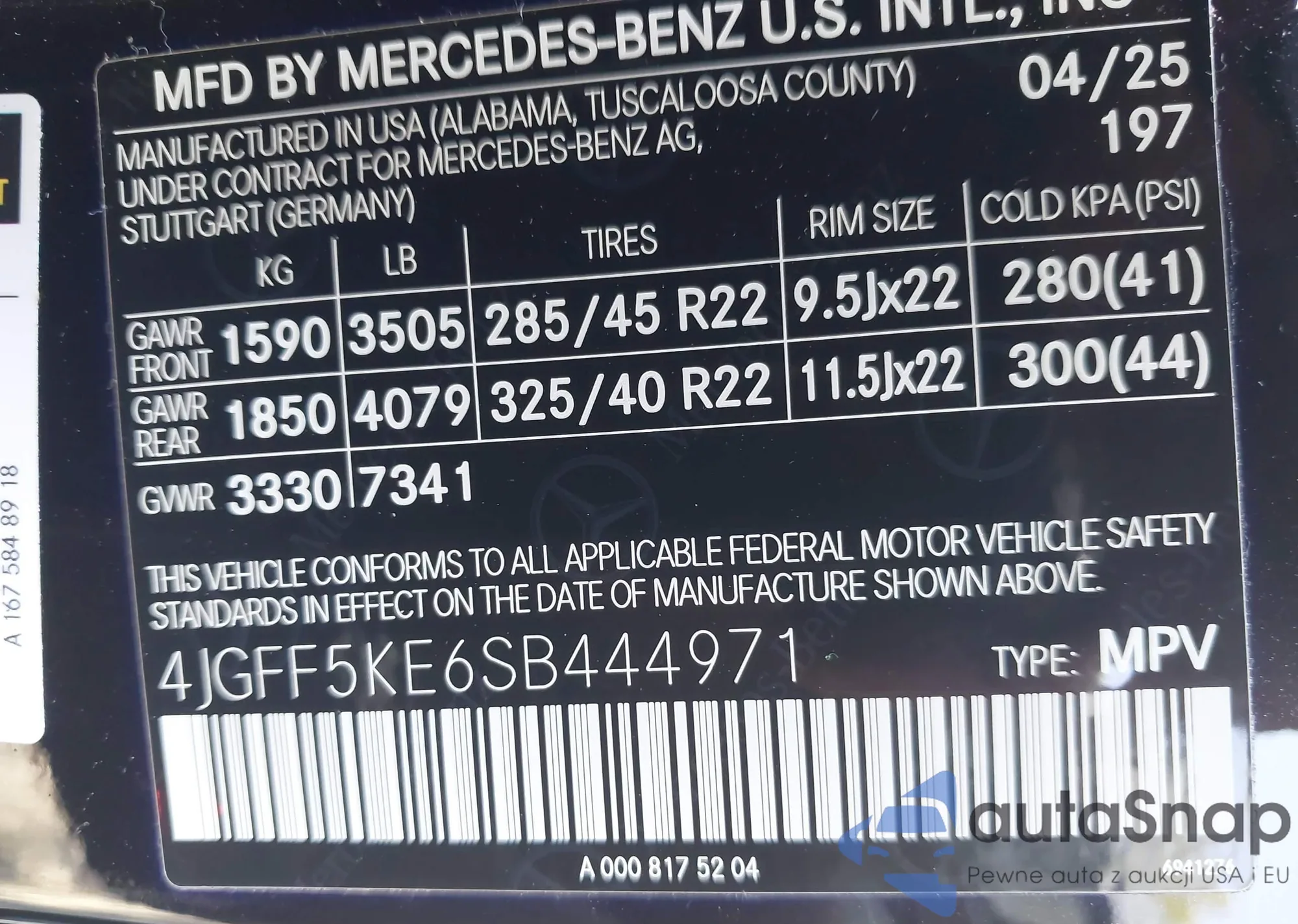 • VIN 4JGFF5KE6SB444971