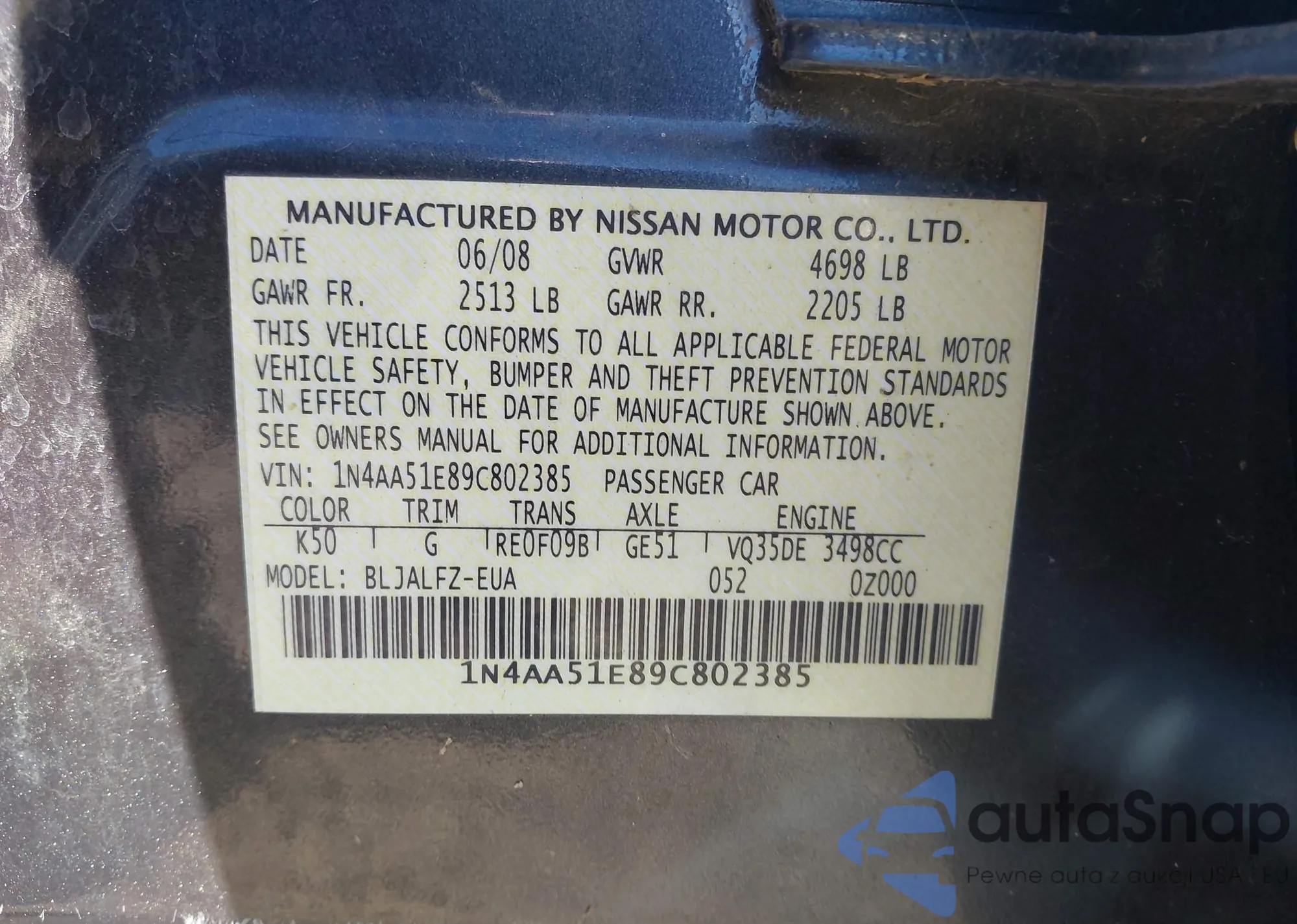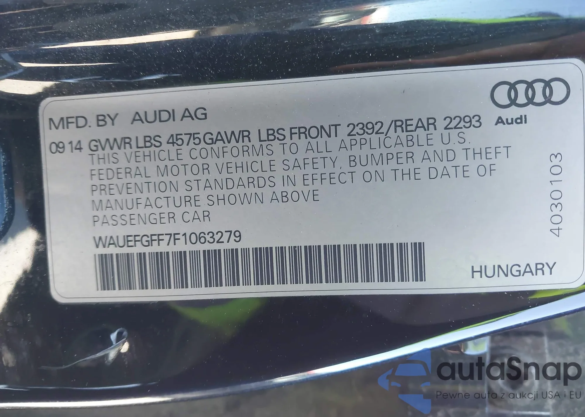 LOT: 43556301 VIN: WAUEFGFF7F1063279