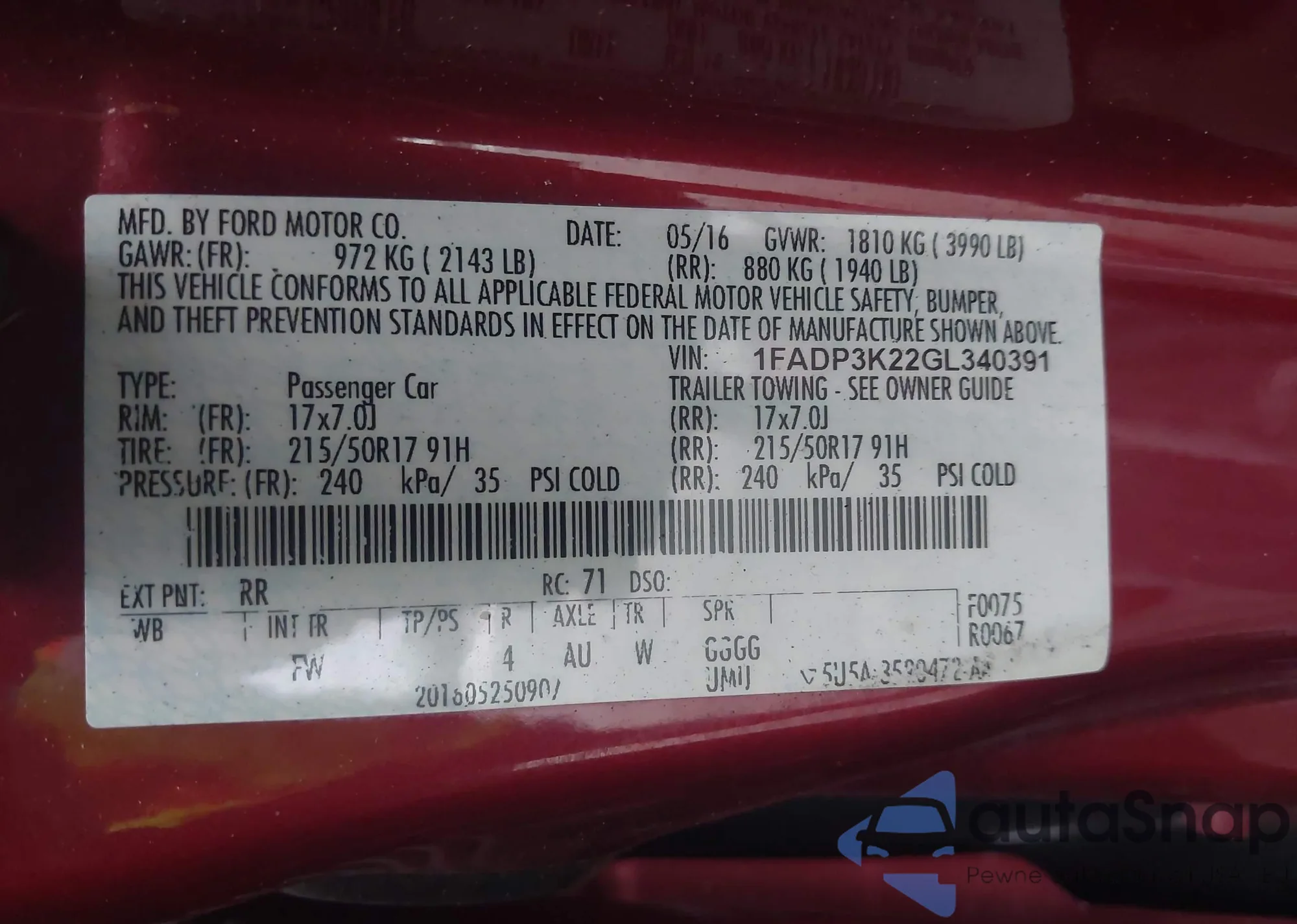 • VIN 1FADP3K22GL340391