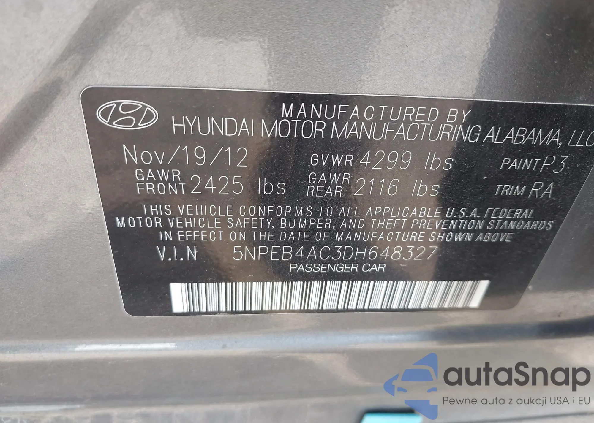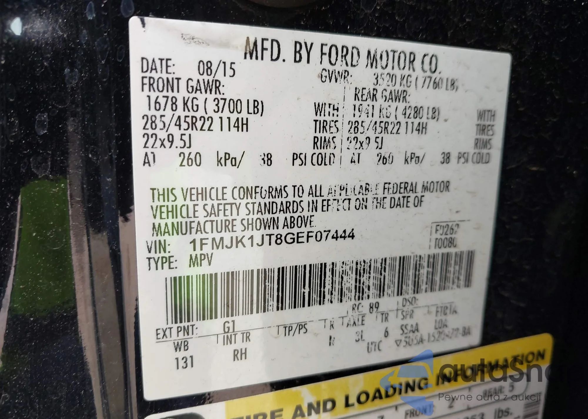 • VIN 3VW7X7BU8SM013255