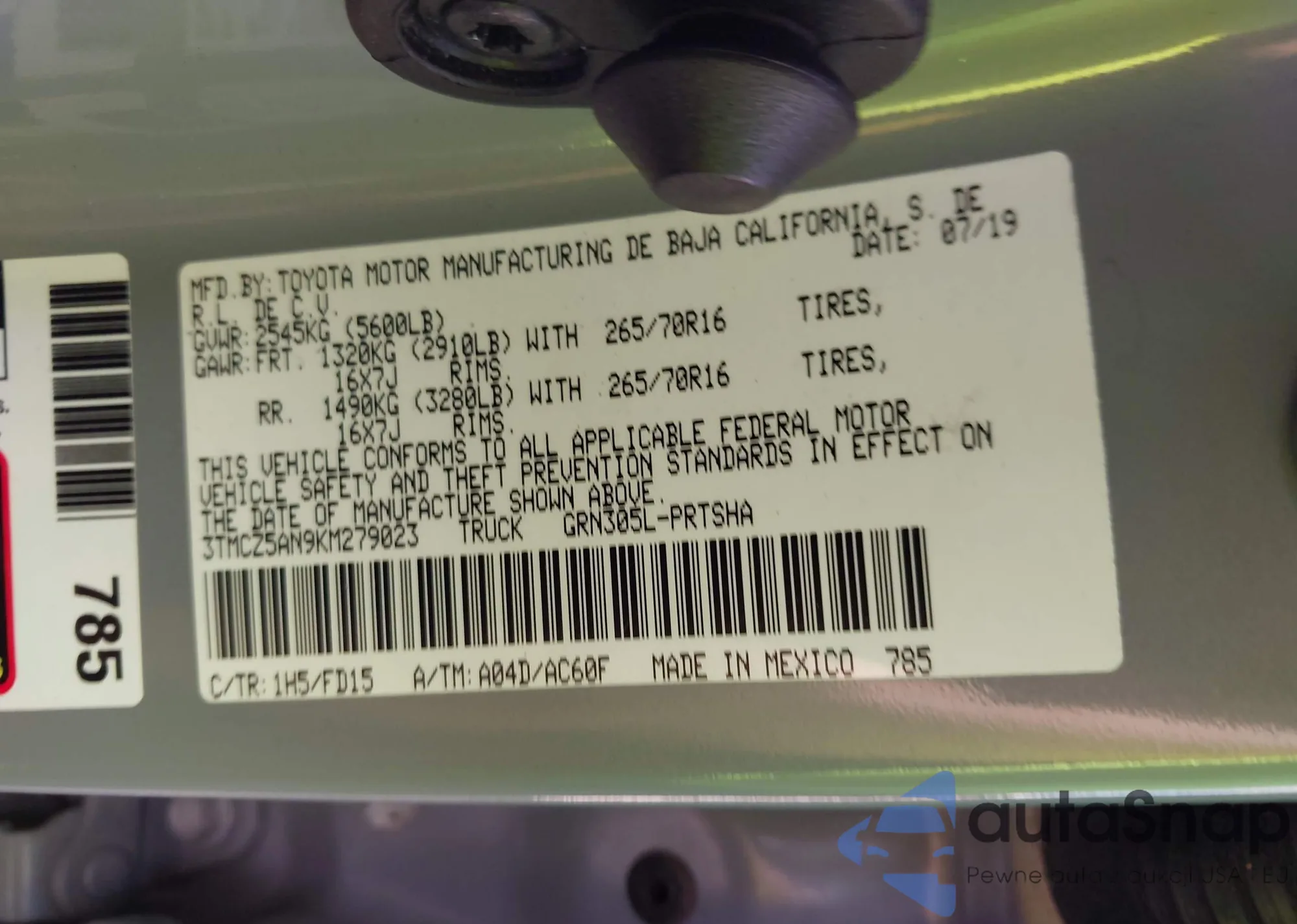 • VIN 1C4RJHAG7PC543255