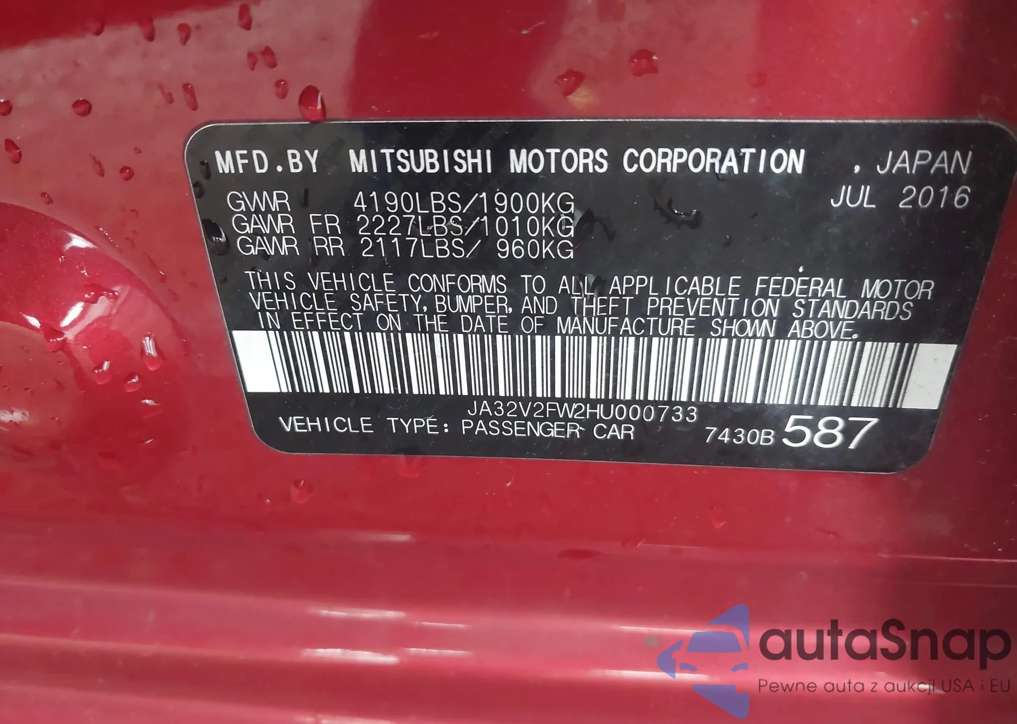 • VIN JA32V2FW2HU000733