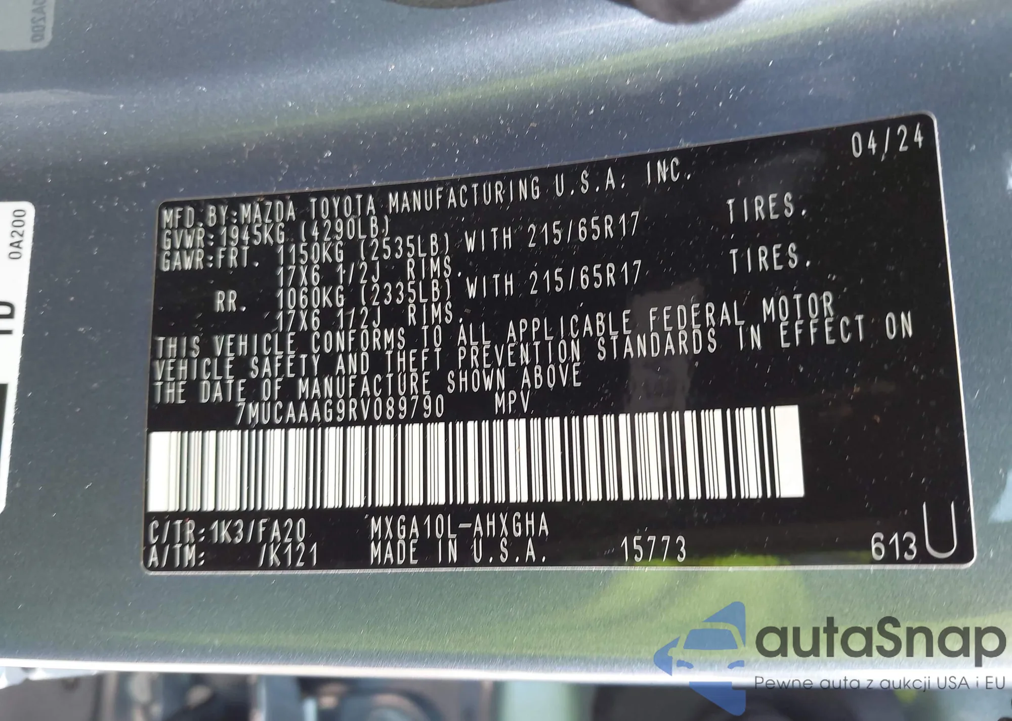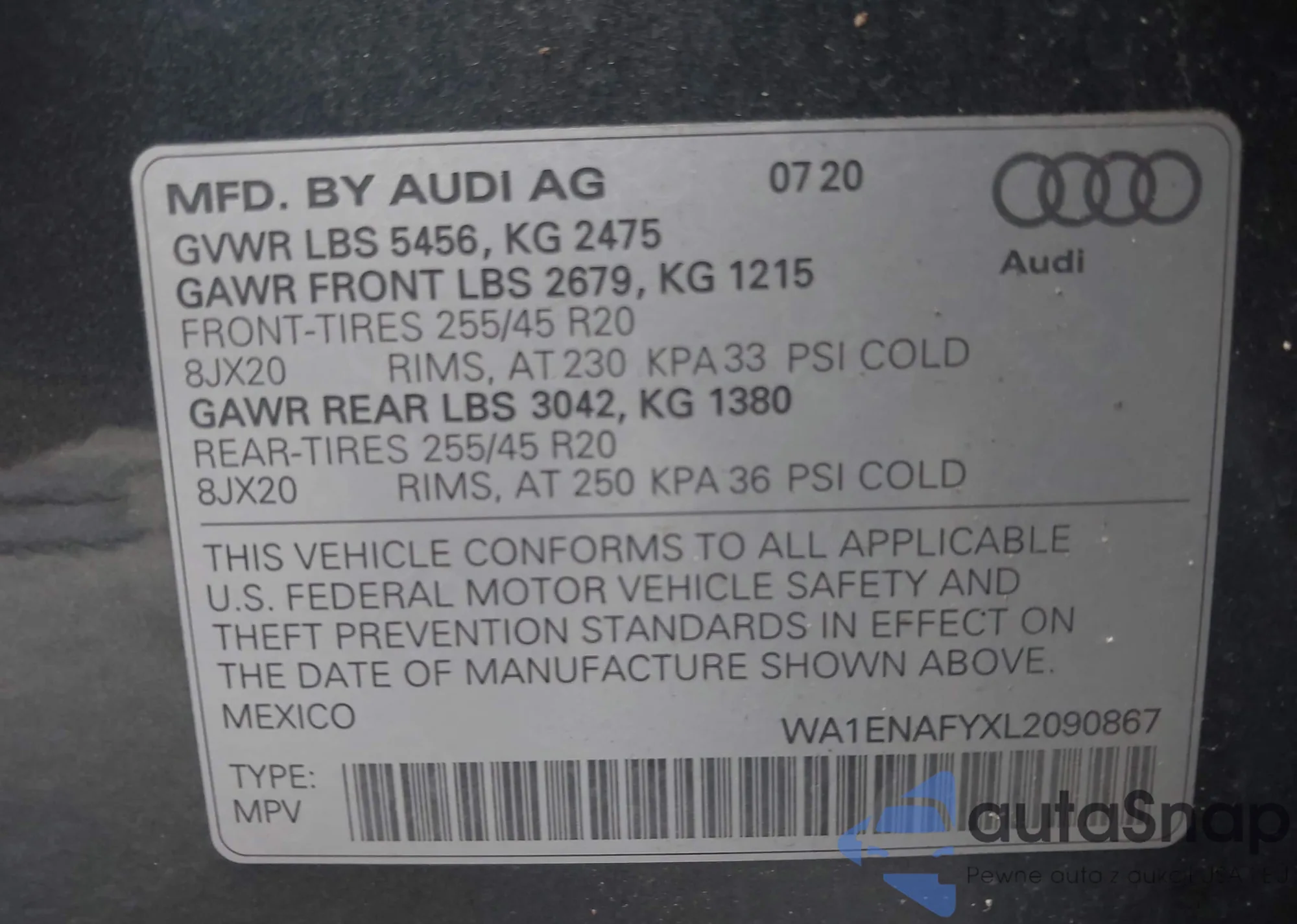 LOT: 43297624 VIN: WA1ENAFYXL2090867