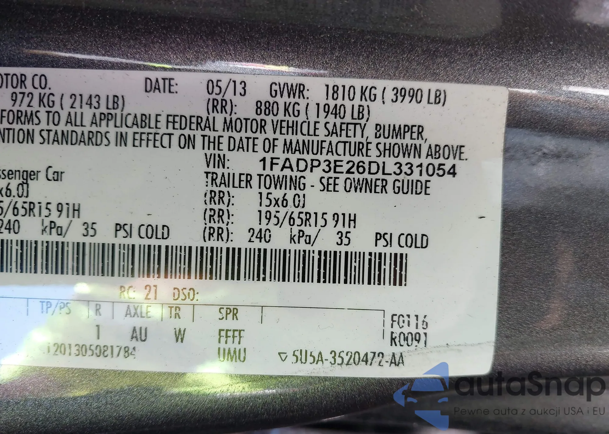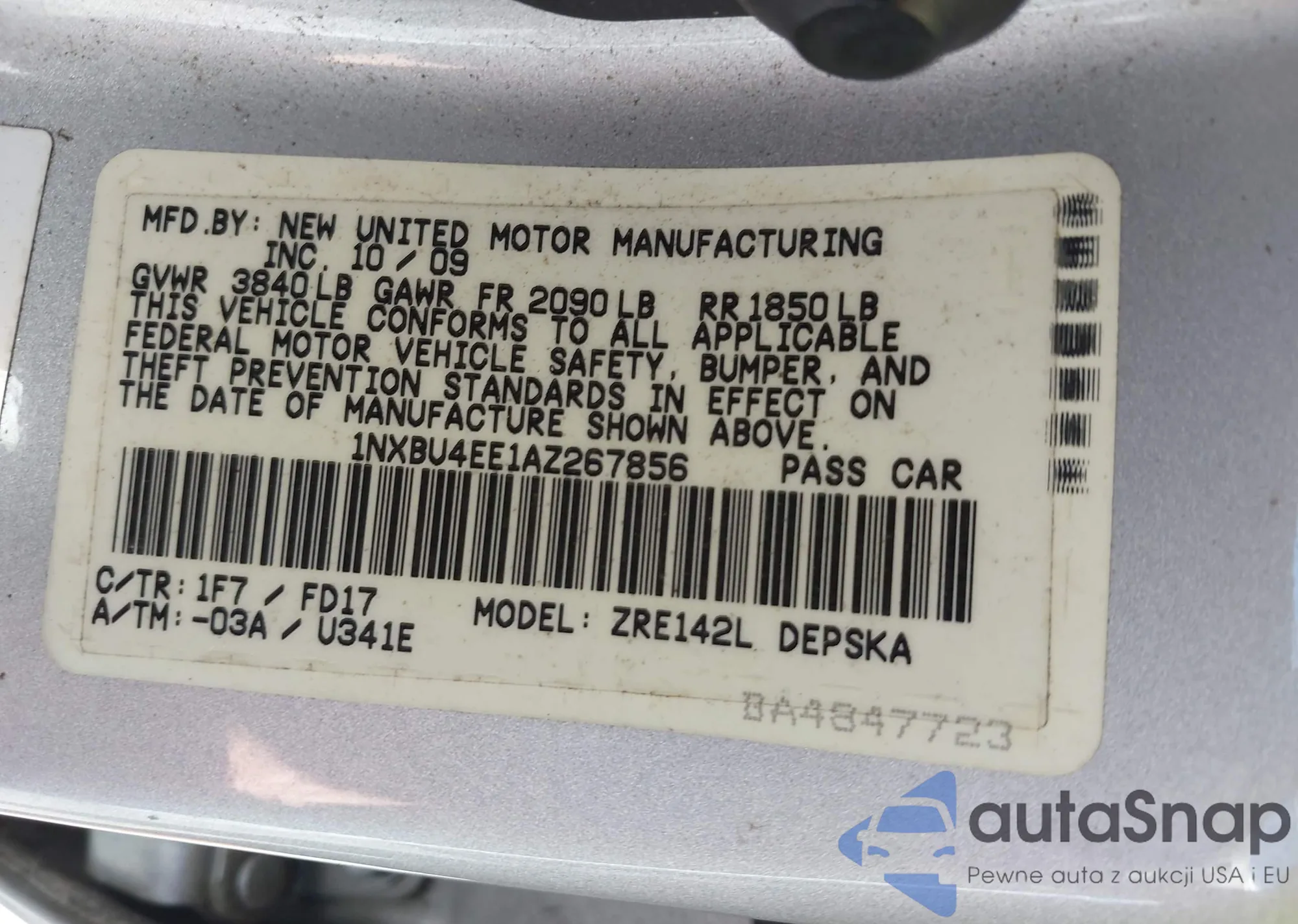 • VIN 4T1BF1FK3EU760327