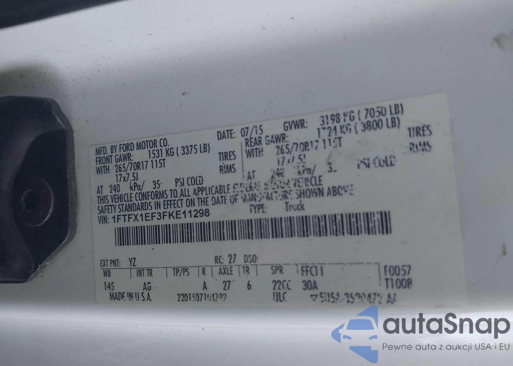 • VIN 1FTFX1EF3FKE11298