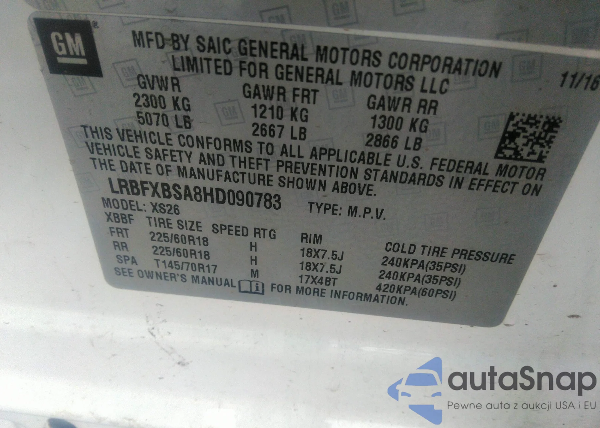 • VIN LRBFXBSA8HD090783
