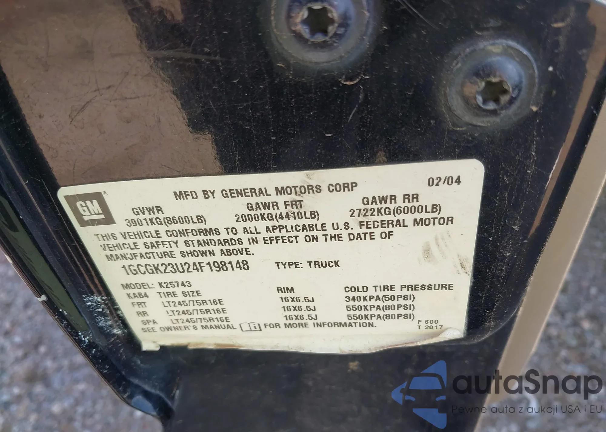 LOT: 42955624 VIN: 1GCGK23U24F198148
