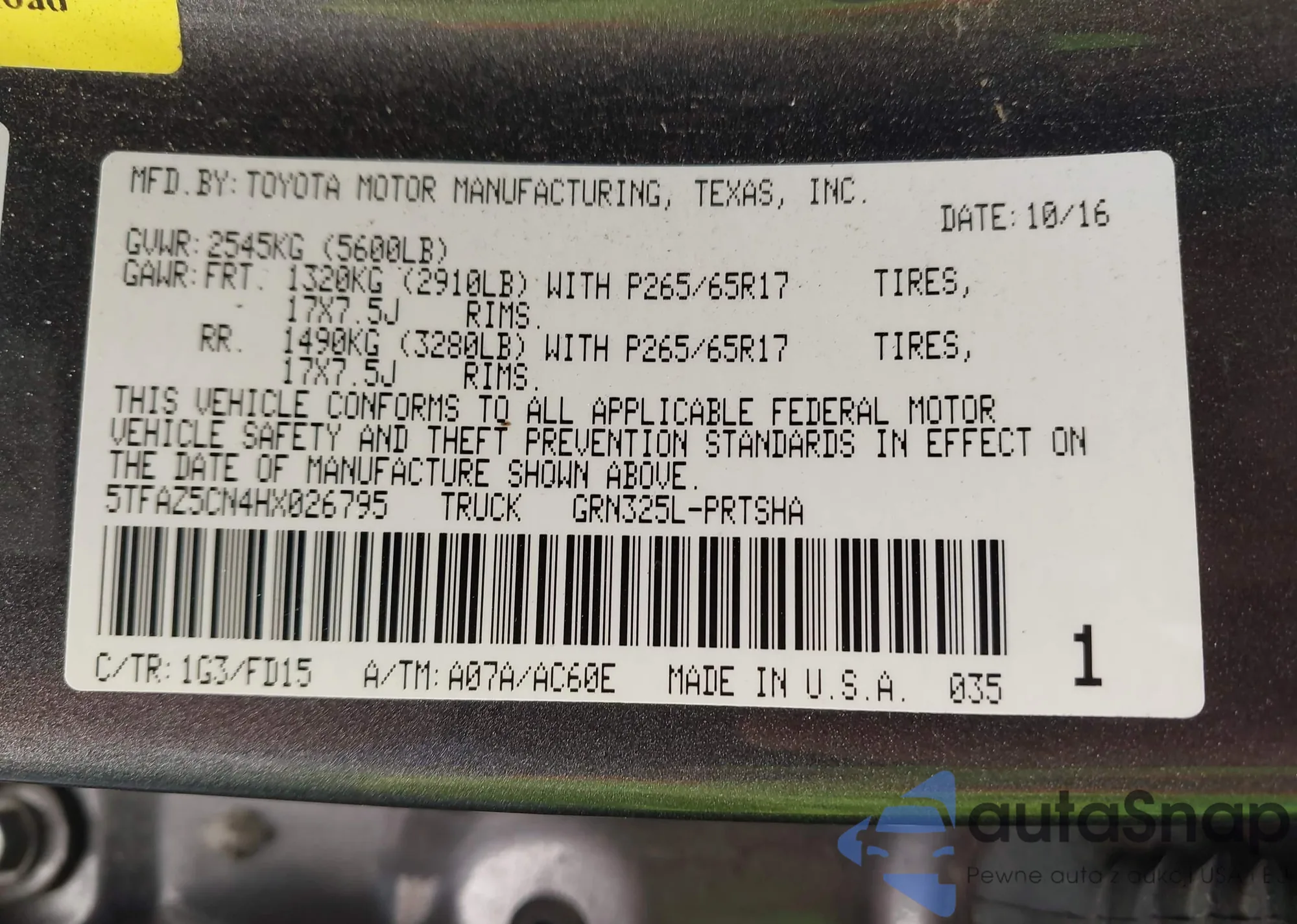 LOT: 34632568 VIN: 5N1AT2MT7KC796285