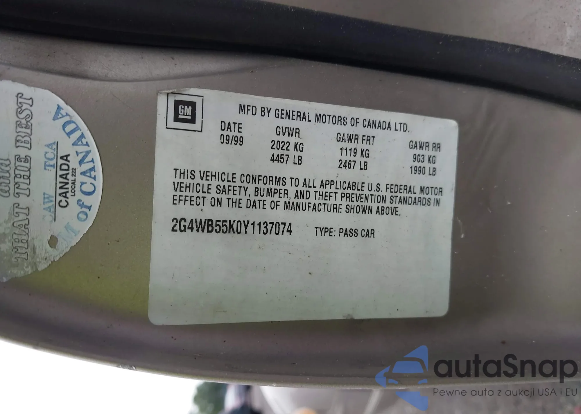 • VIN 2G4WB55KOY1137074