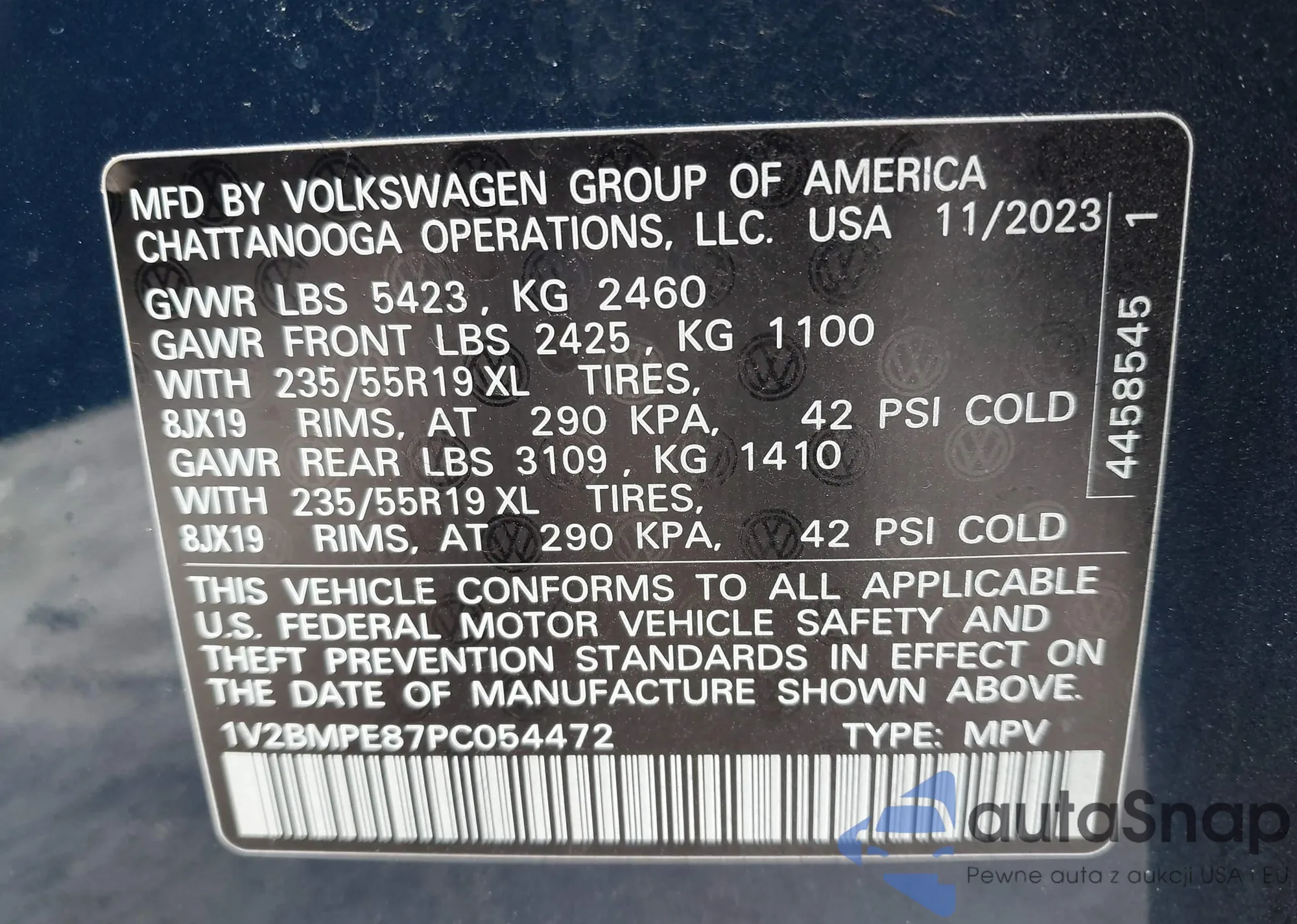 LOT: 43491393 VIN: 1V2BMPE87PC054472