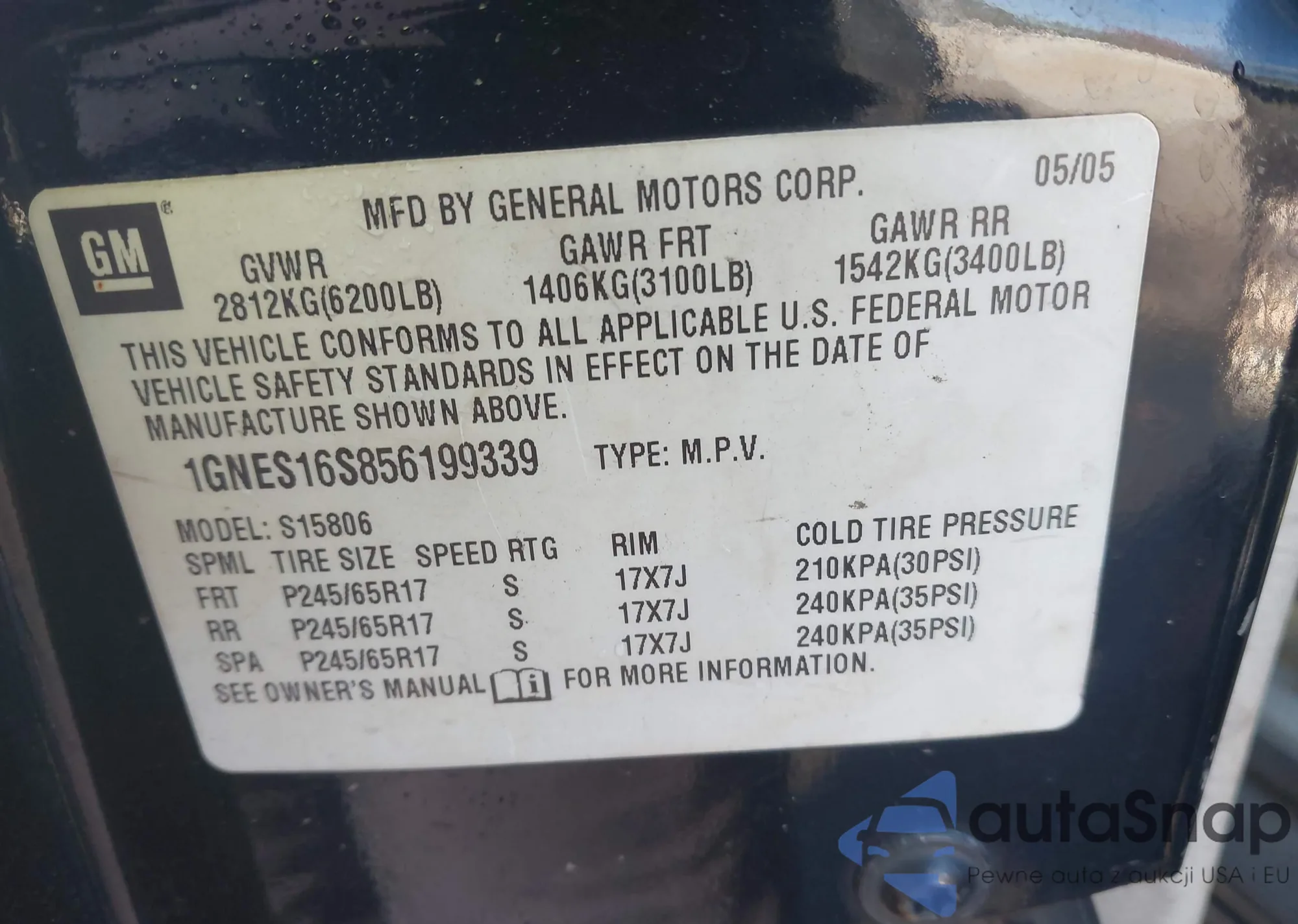 • VIN 5NTJCDAE6NH022805