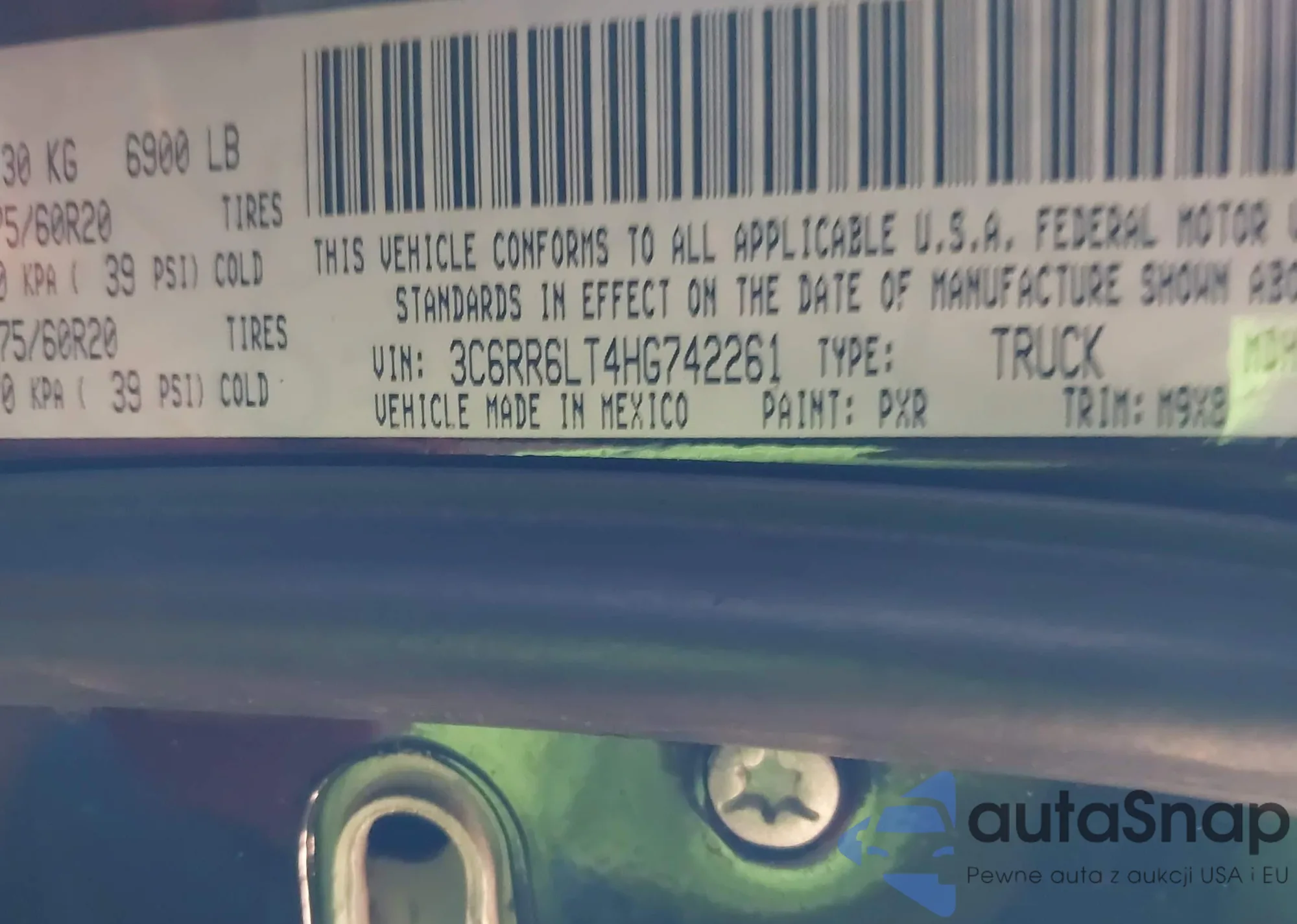 • VIN 3C6RR6LT4HG742261