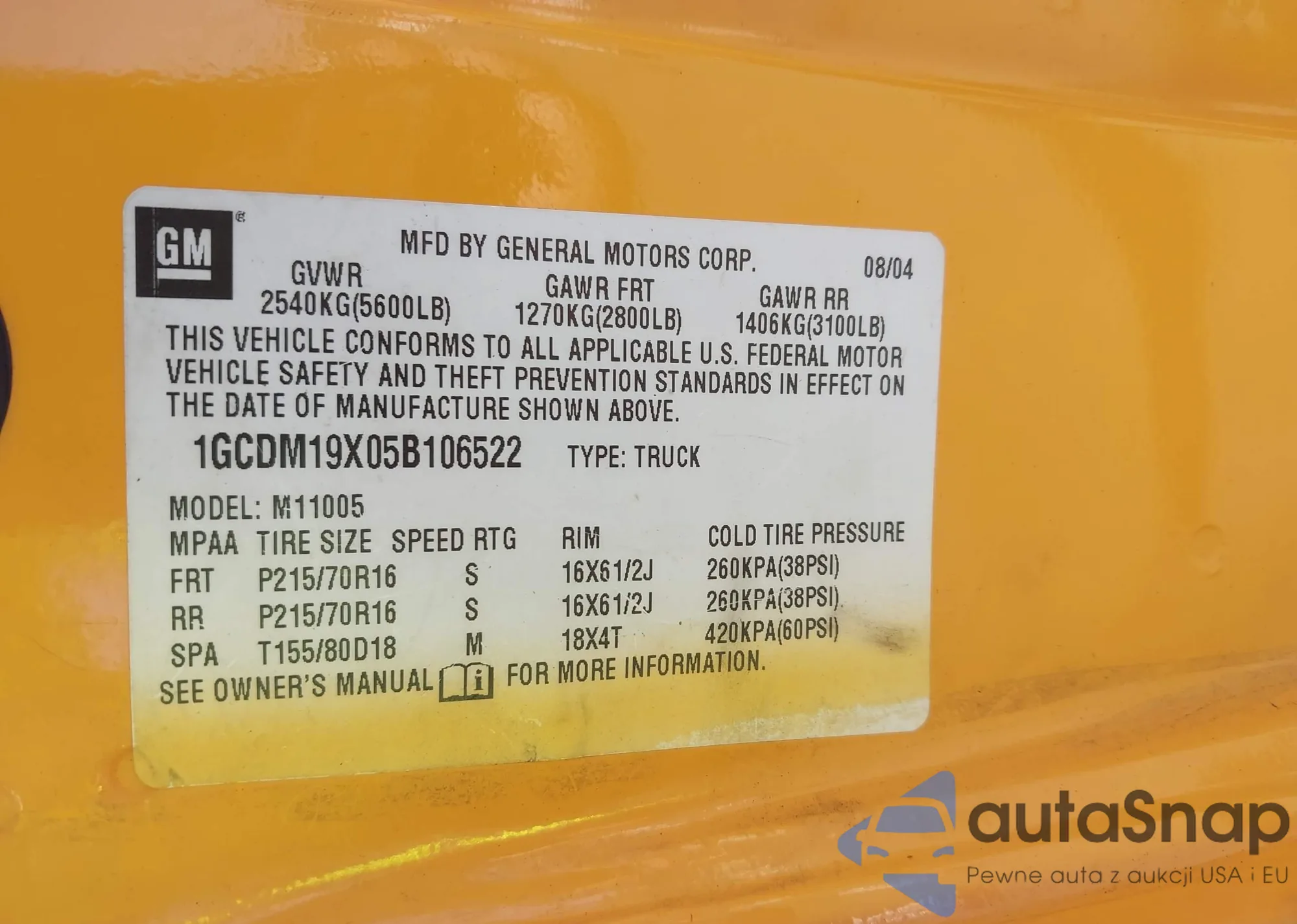 LOT: 43250399 VIN: 1GCDM19X05B106522