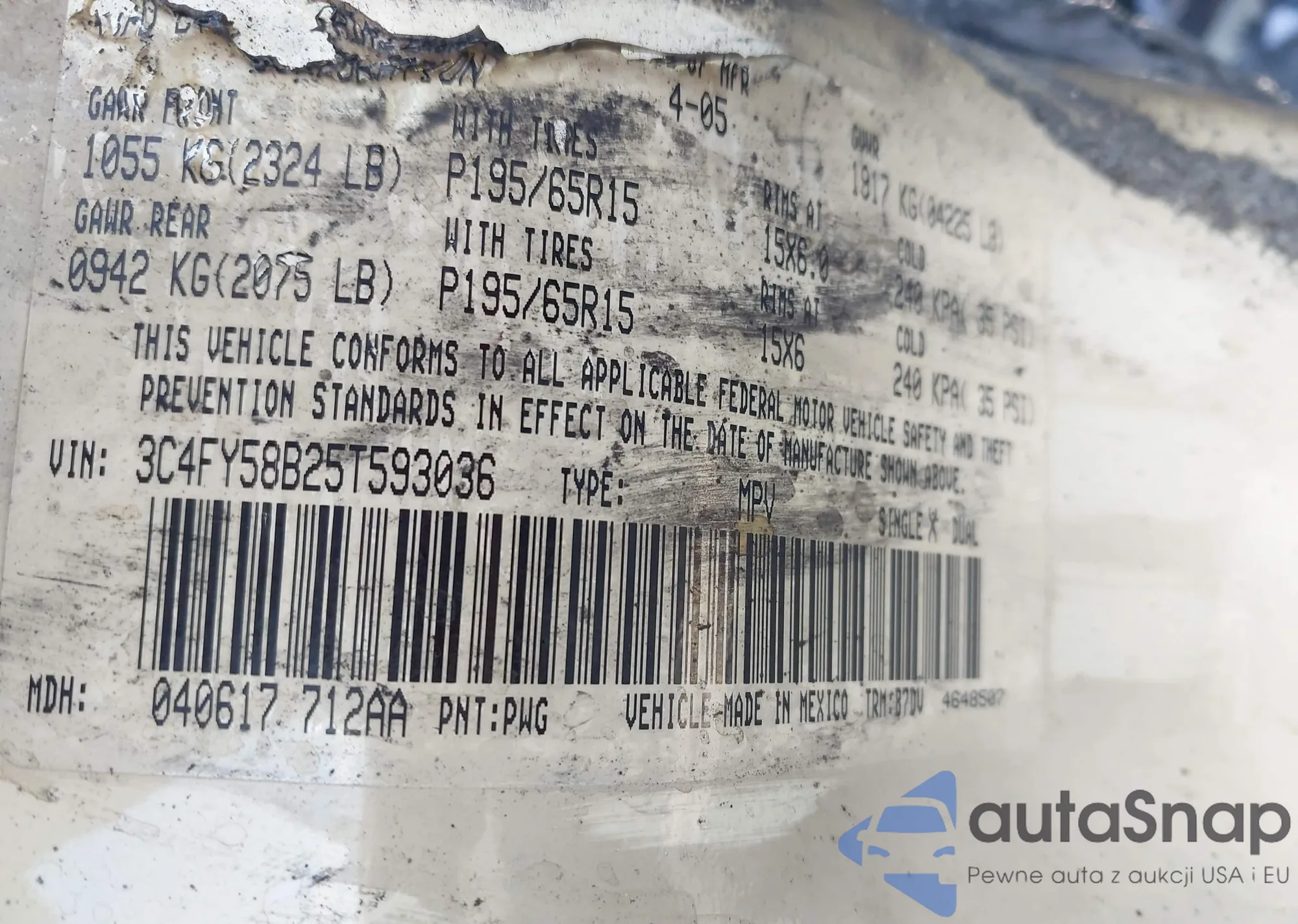 • VIN 3C4FY58B25T593036
