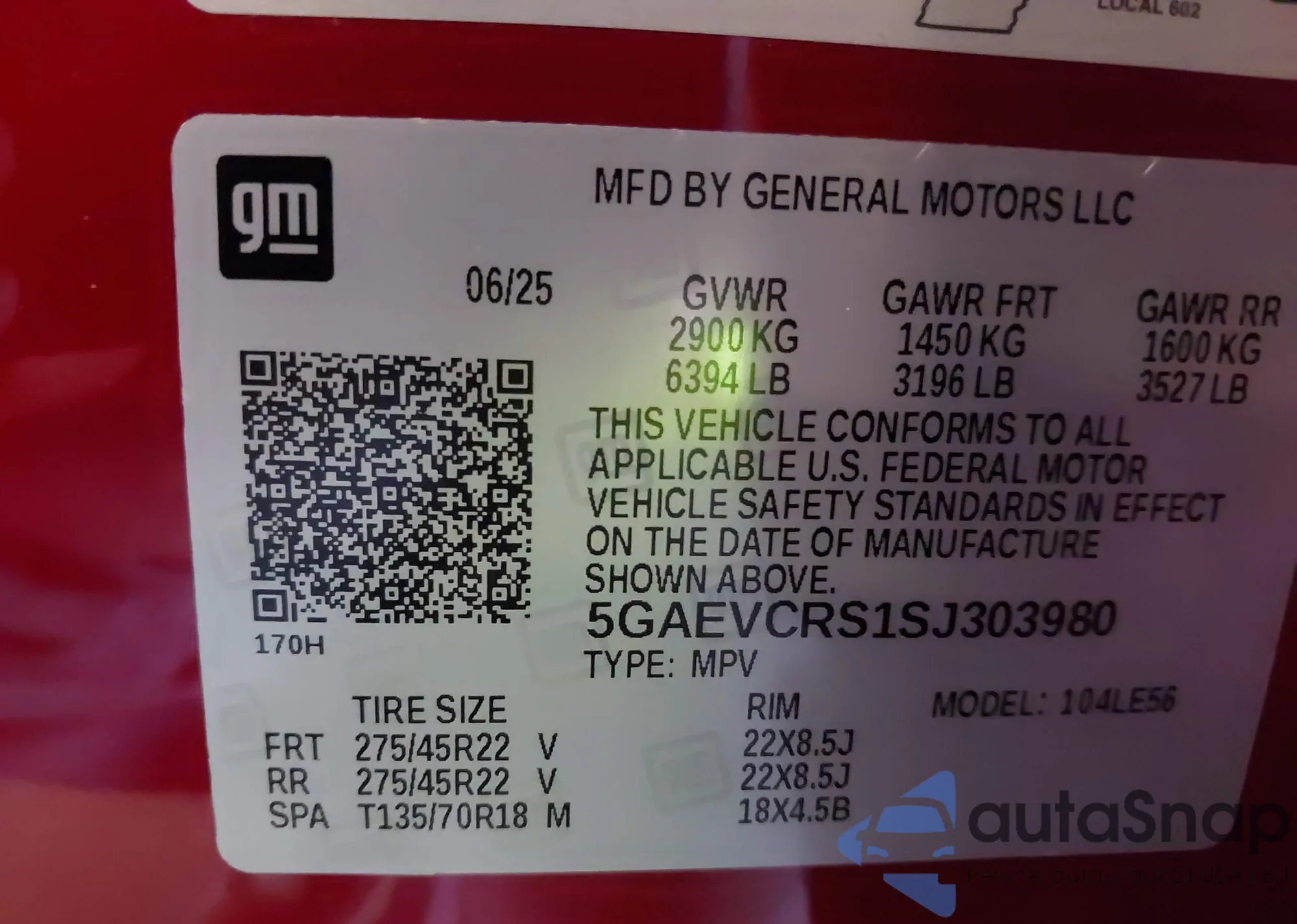 • VIN 5GAEVCRS1SJ303680