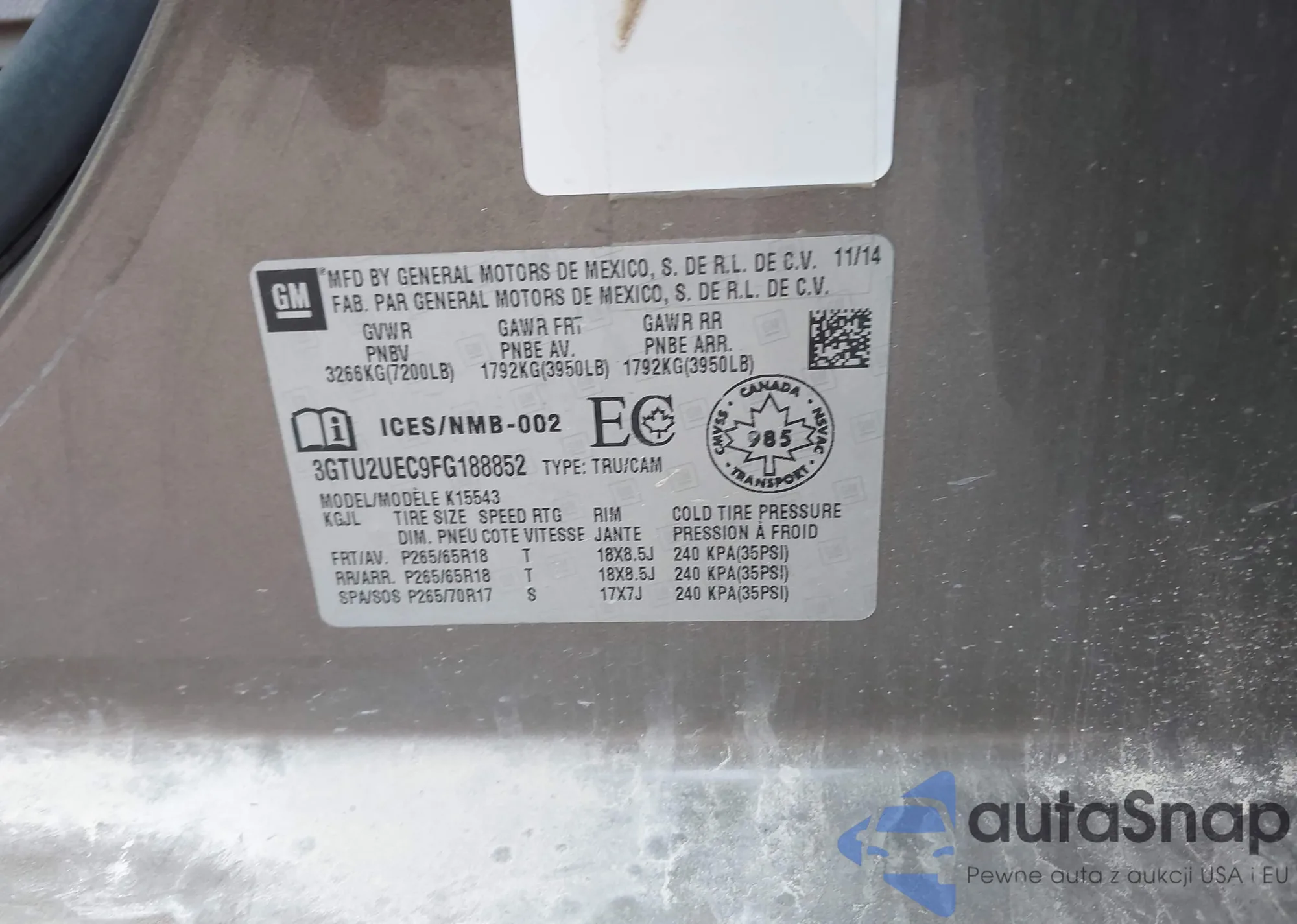 • VIN 3GTU2UEC9FG188852