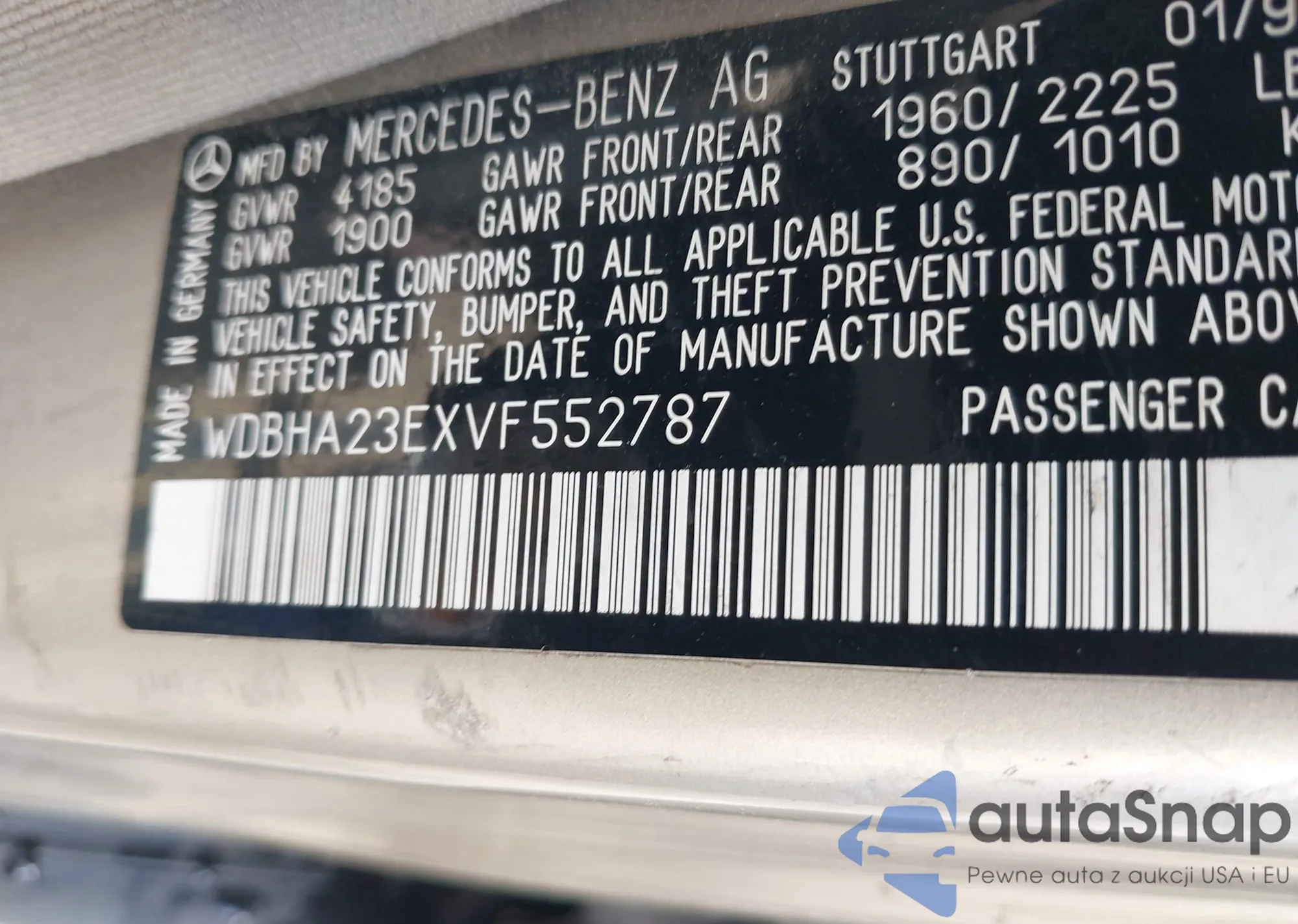 LOT: 43597281 VIN: WDBHA23EXVF552787